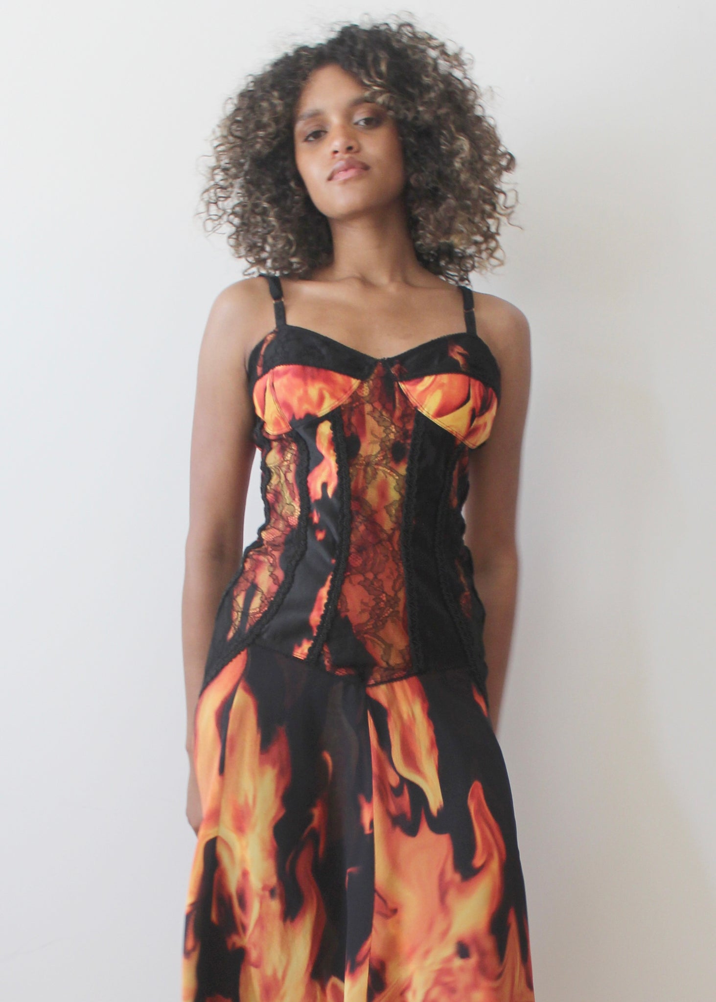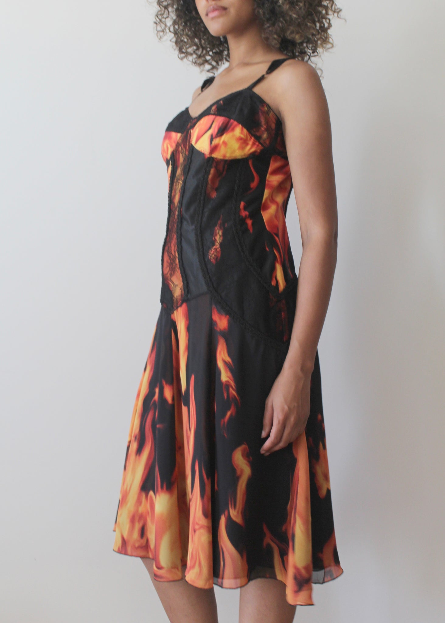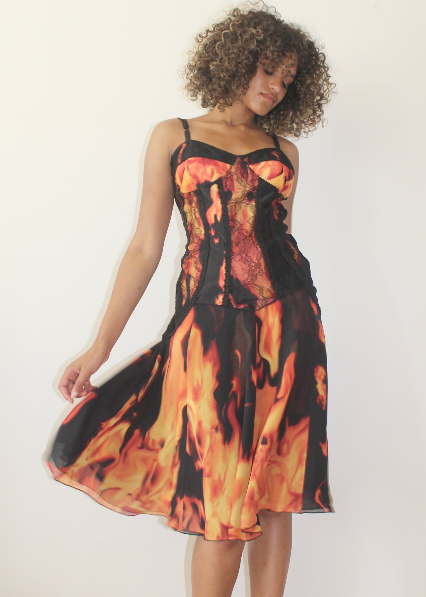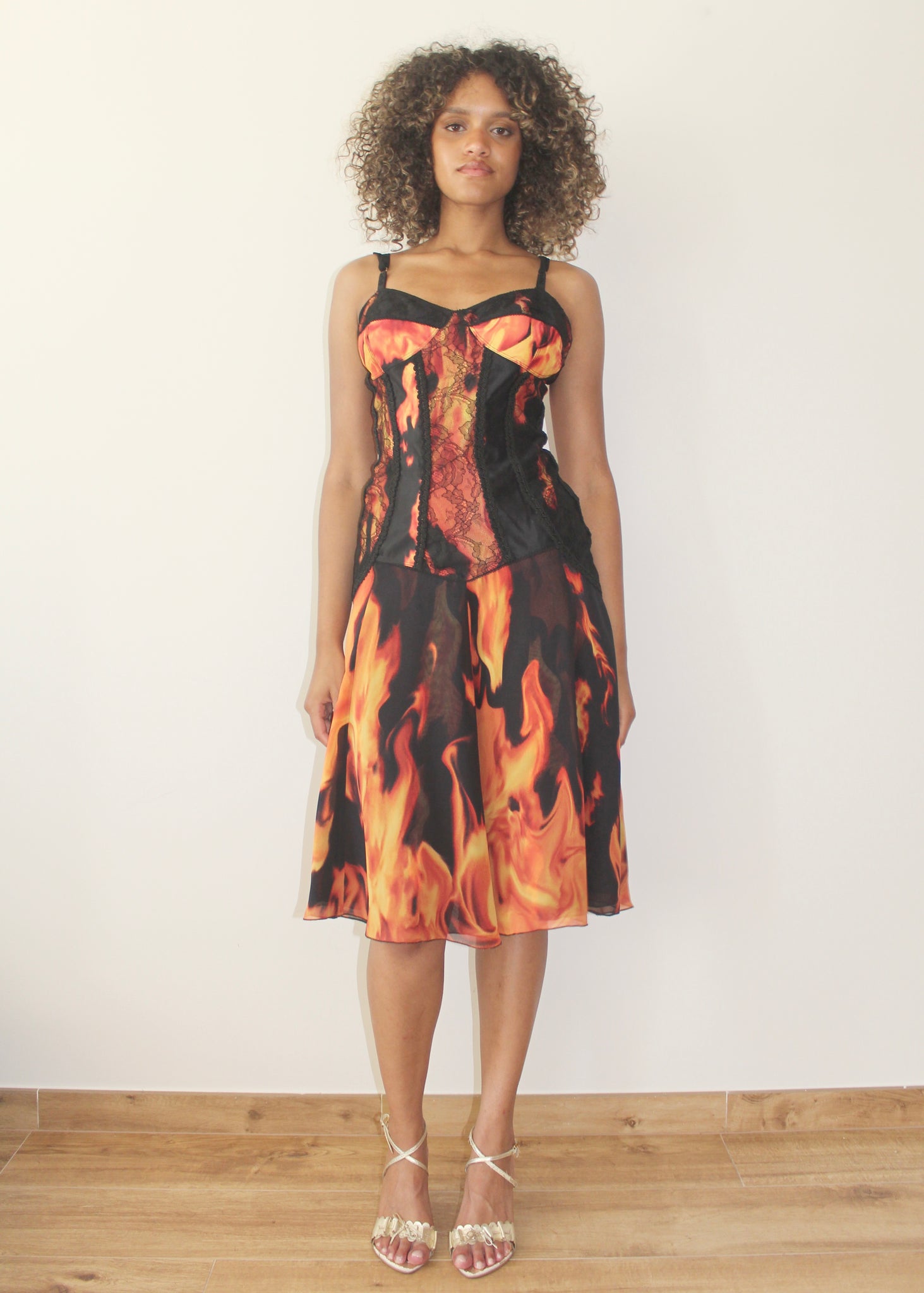Abito bustier di seta con stampa fiamme, Angelo Marani.