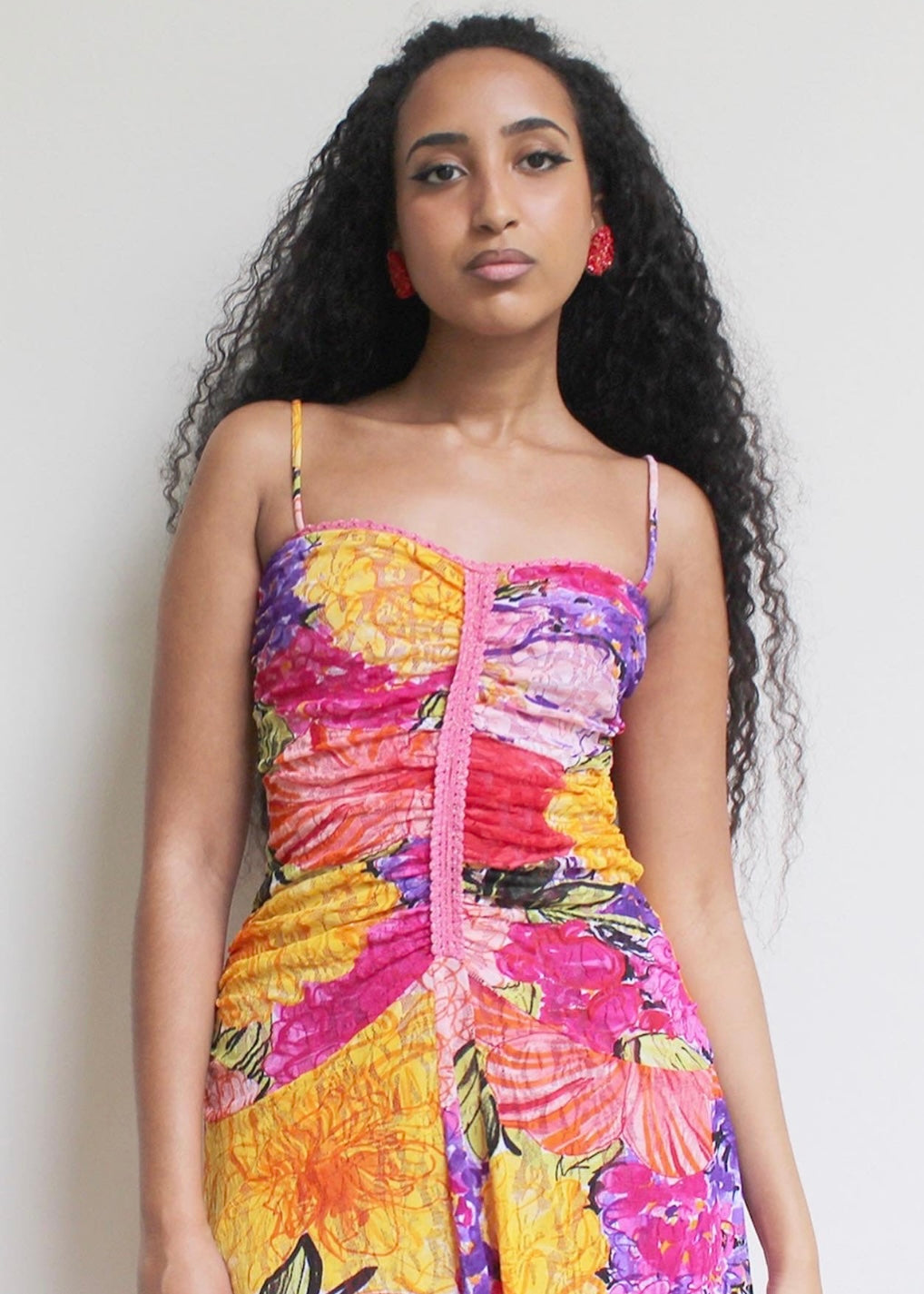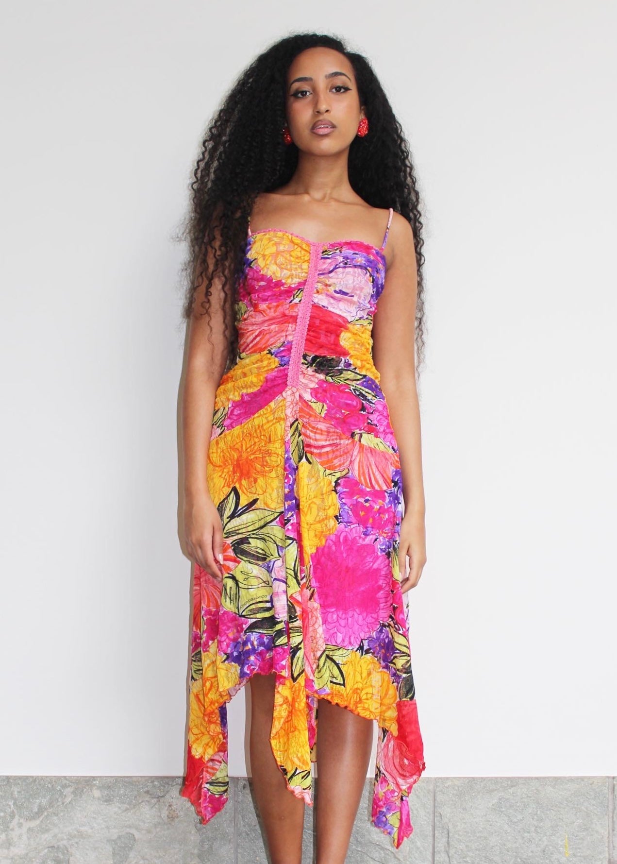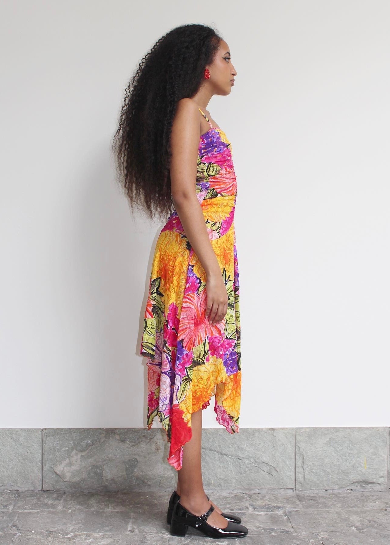 Abito floreale con voilant, Rocco Barocco.
