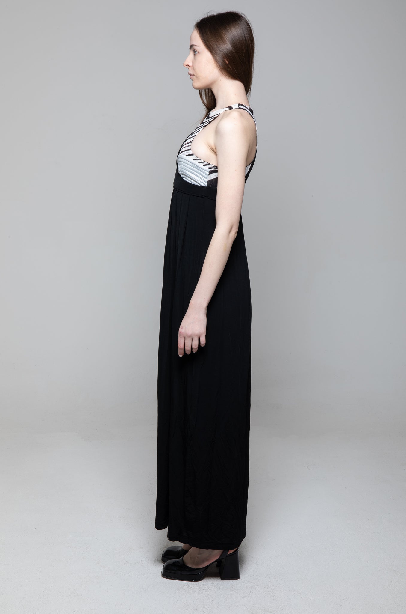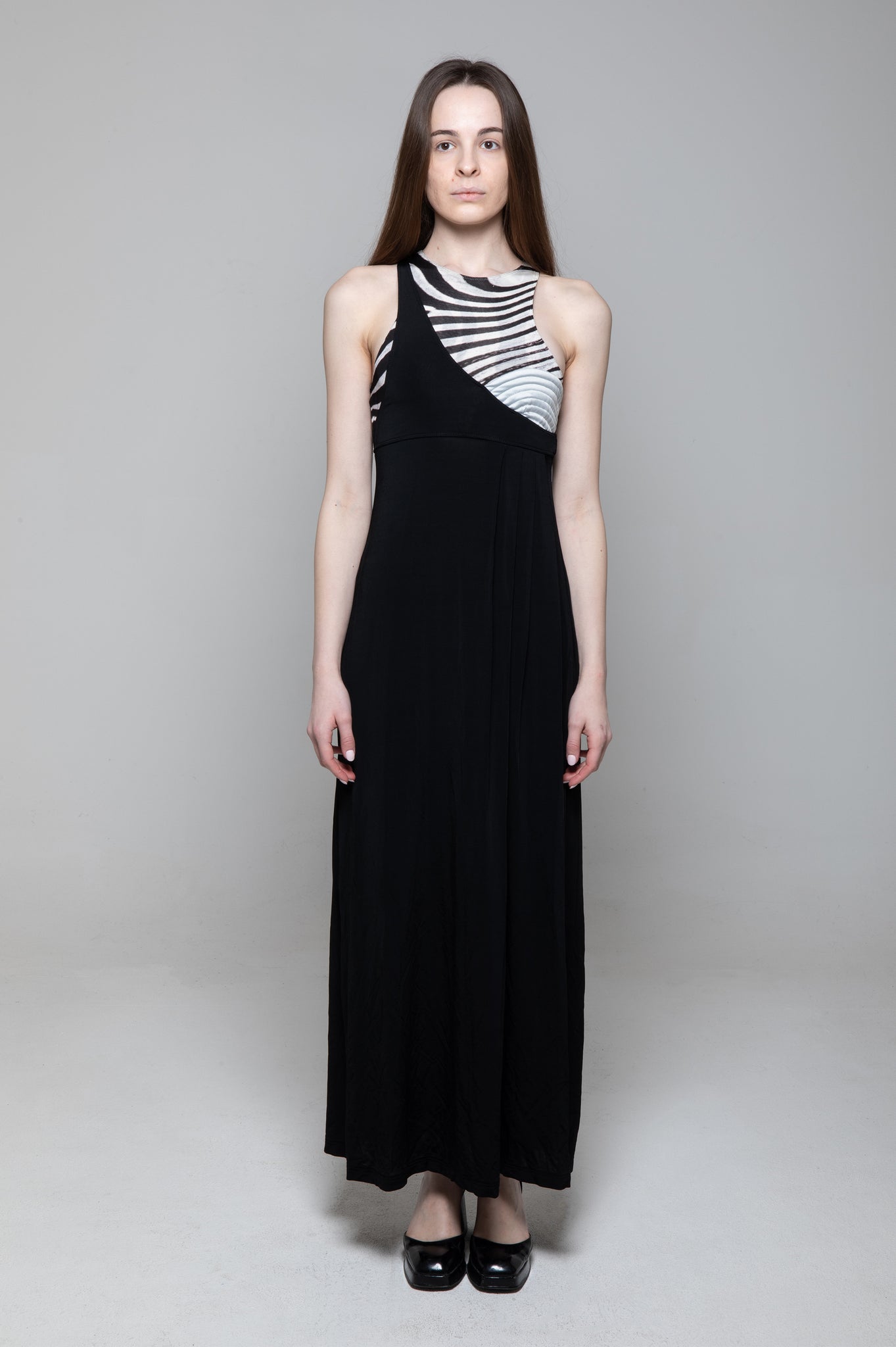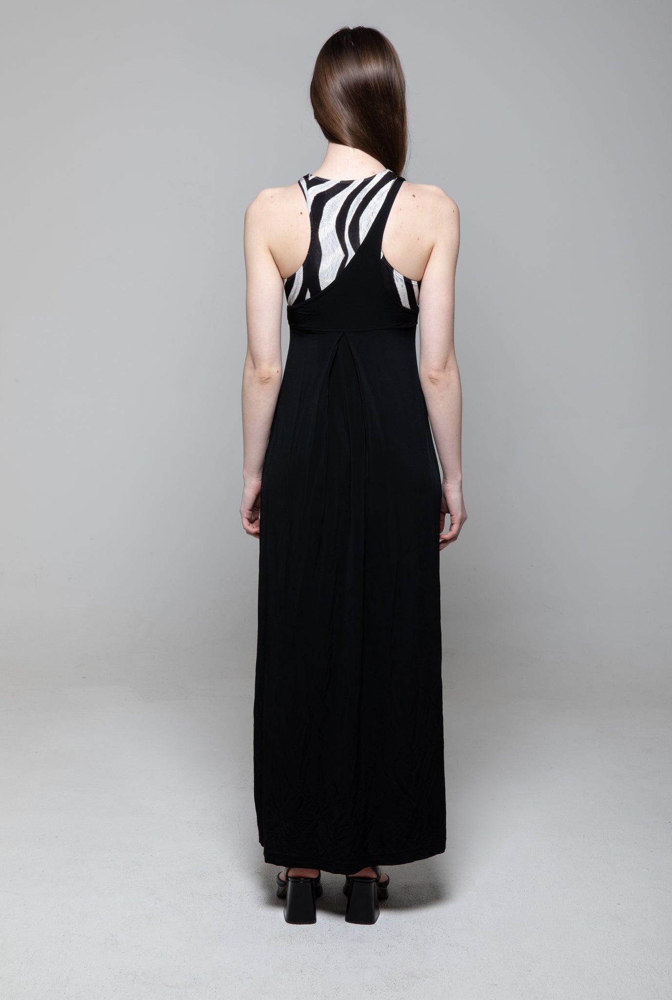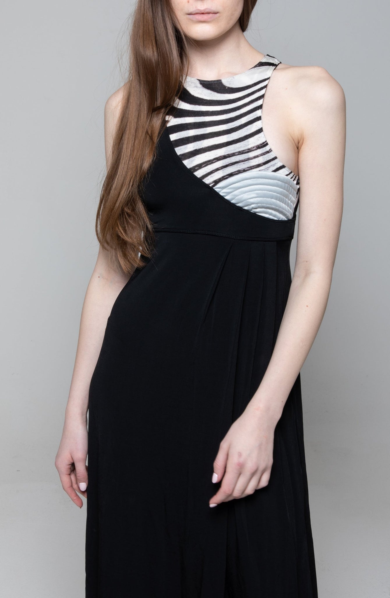 Abito lungo nero parte zebrate e coppa rigida, Just Cavalli.