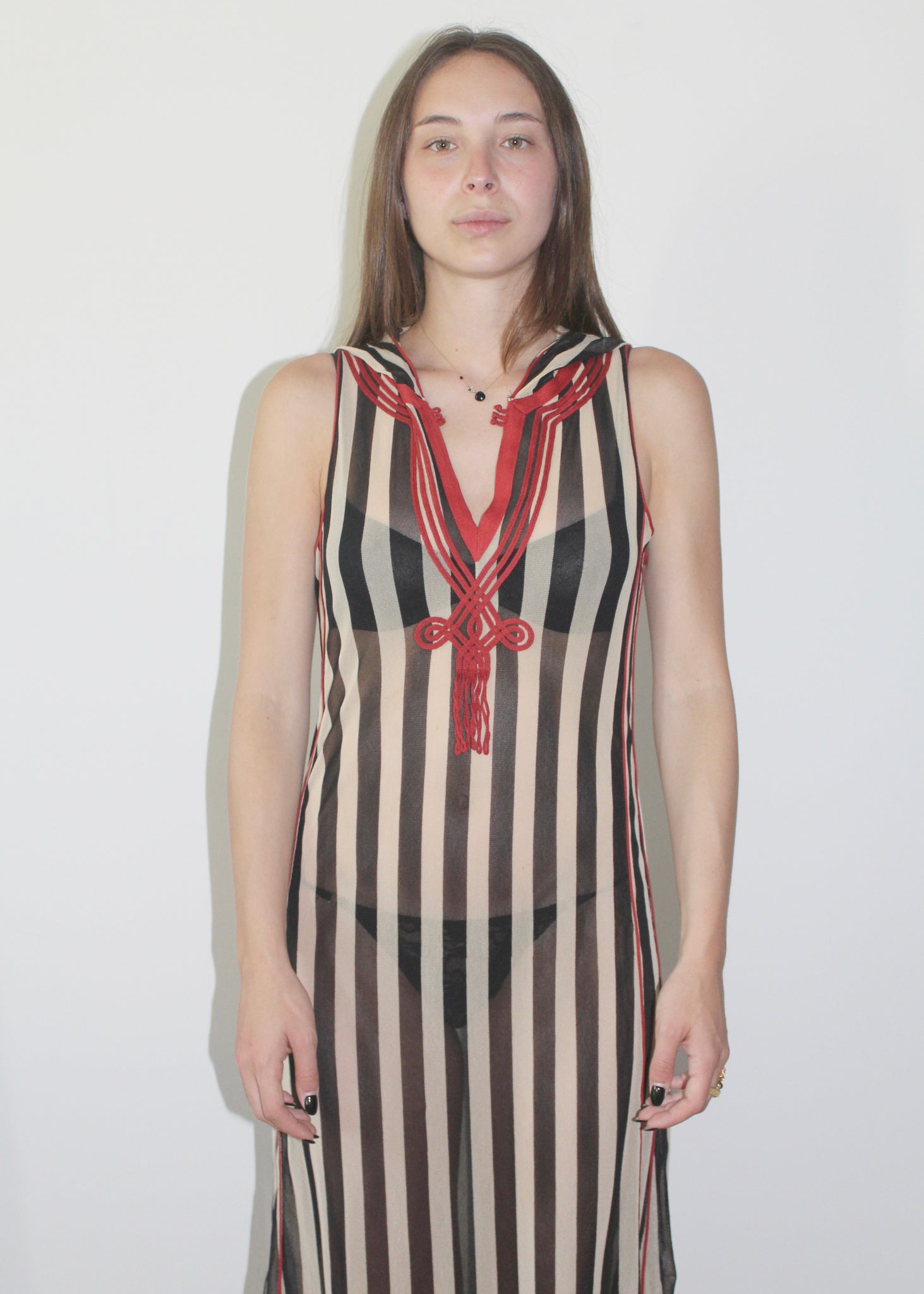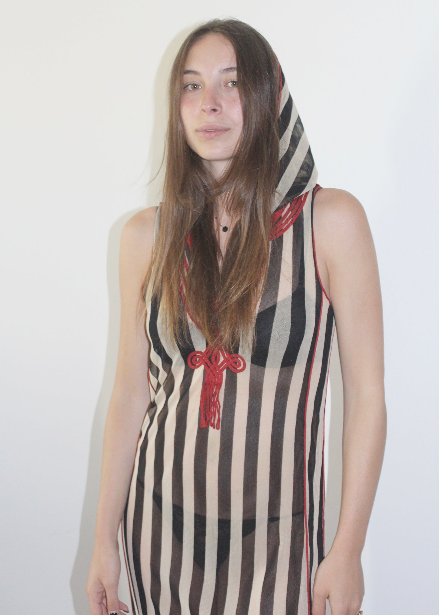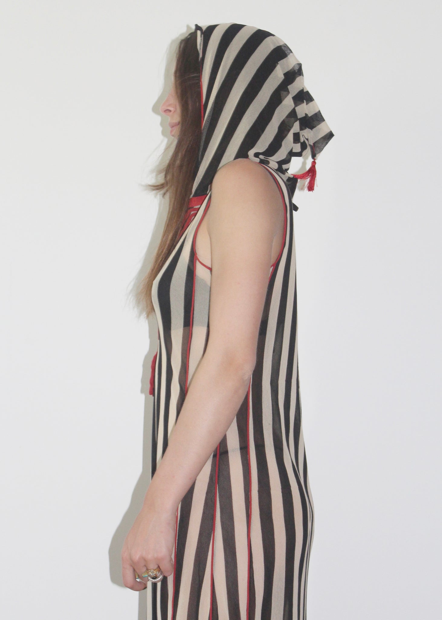 Abito mesh tunica lungo con cappuccio, Jean Paul Gaultier.
