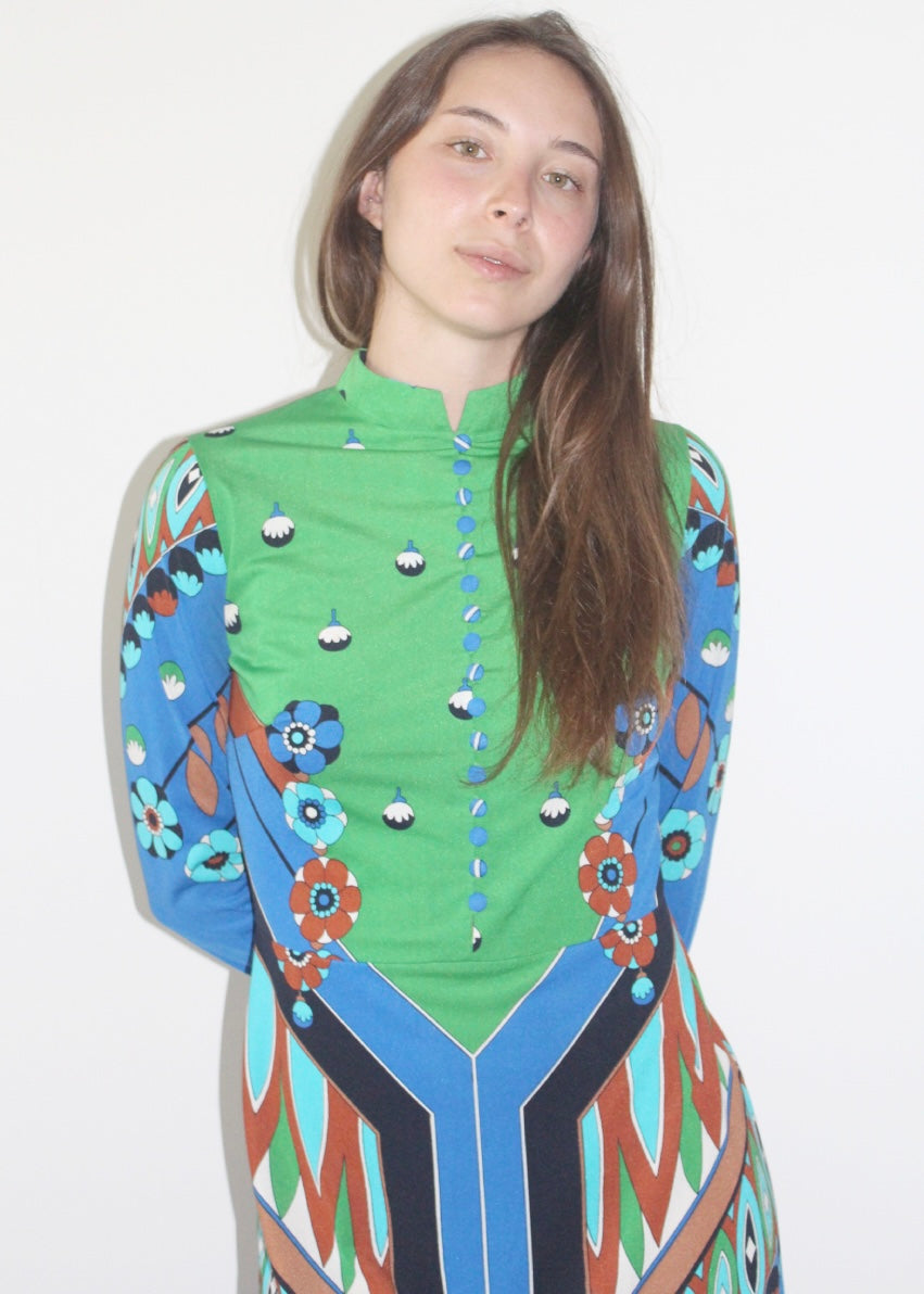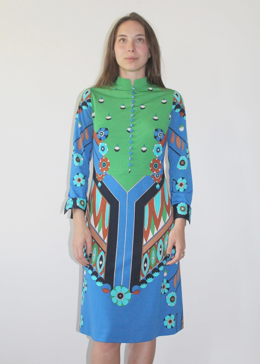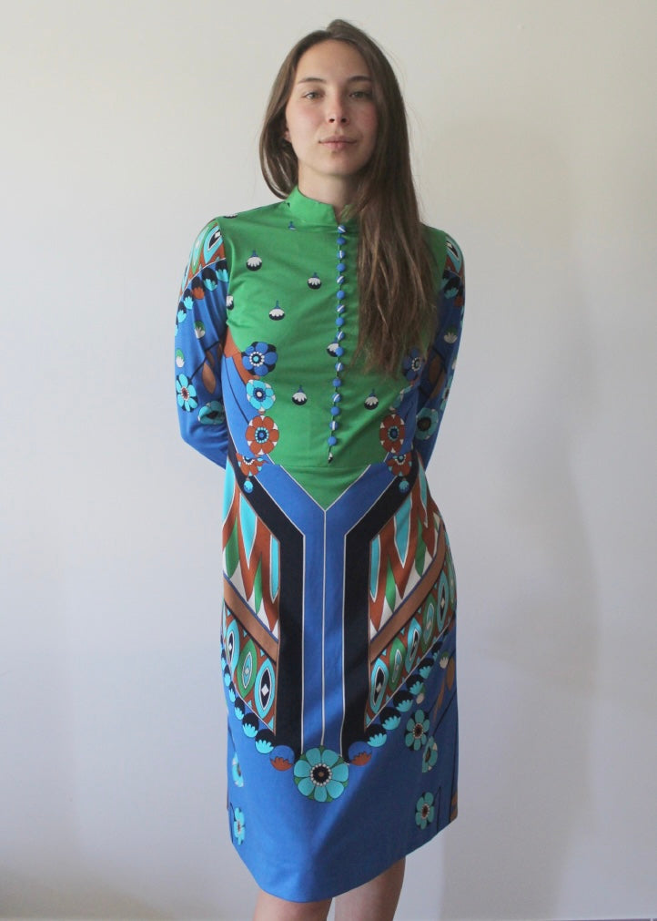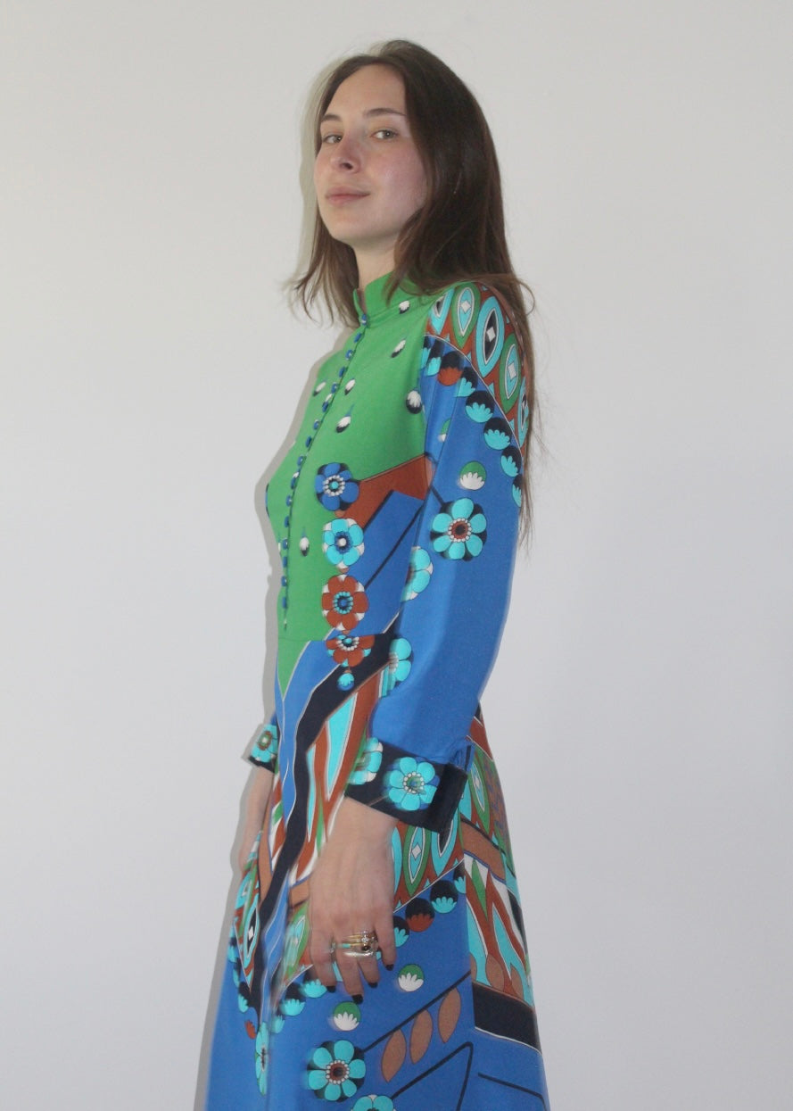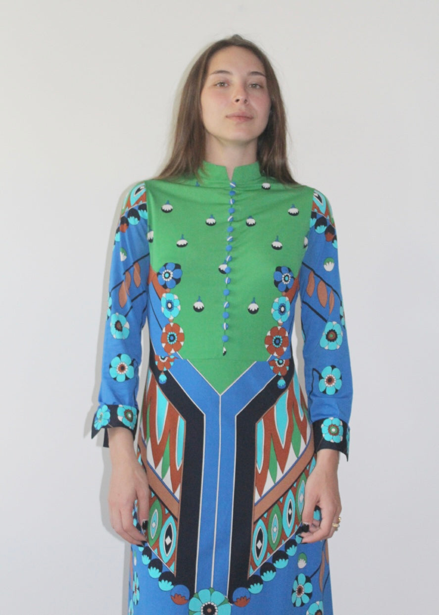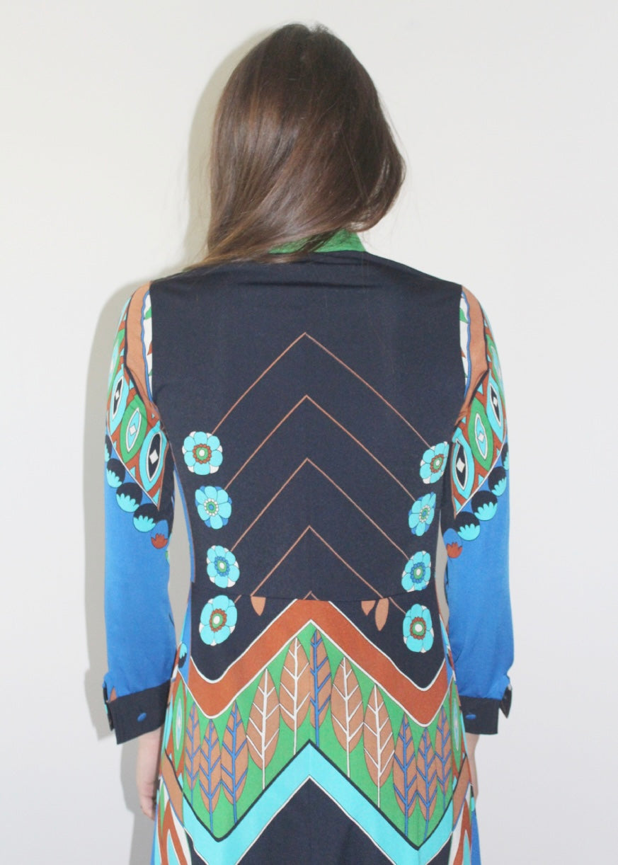 Bellissimo abito multicolore con bottoncini frontali originale anni 70.