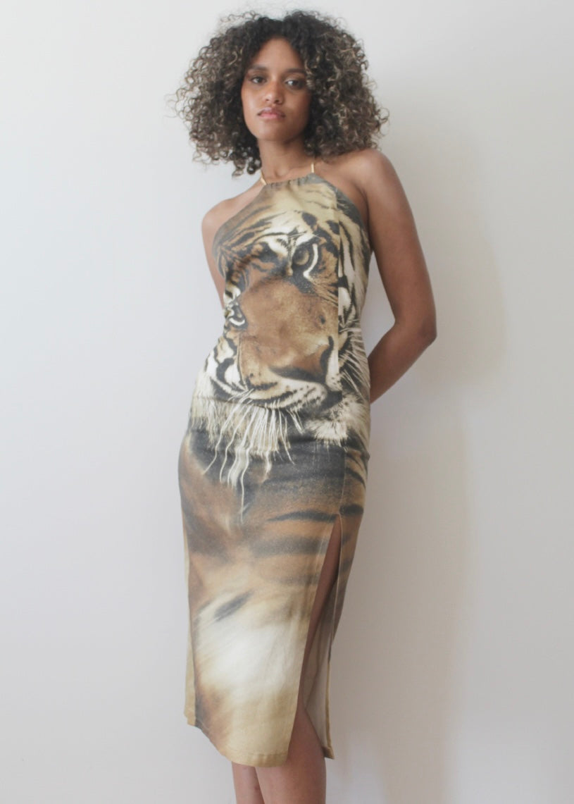 Abito con stampa tigre con spacco laterale, Vintage.