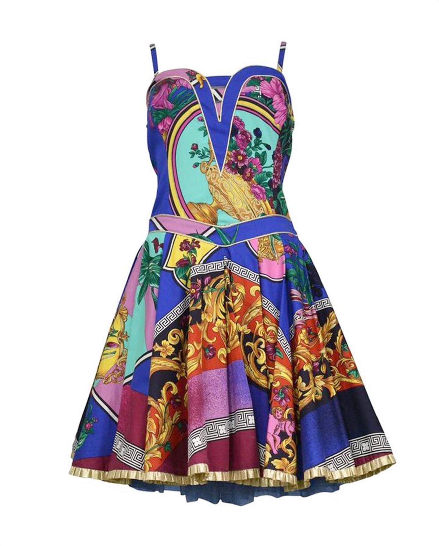 Abito in cotone con gonna ampia, sottogonna in tulle, Versace.