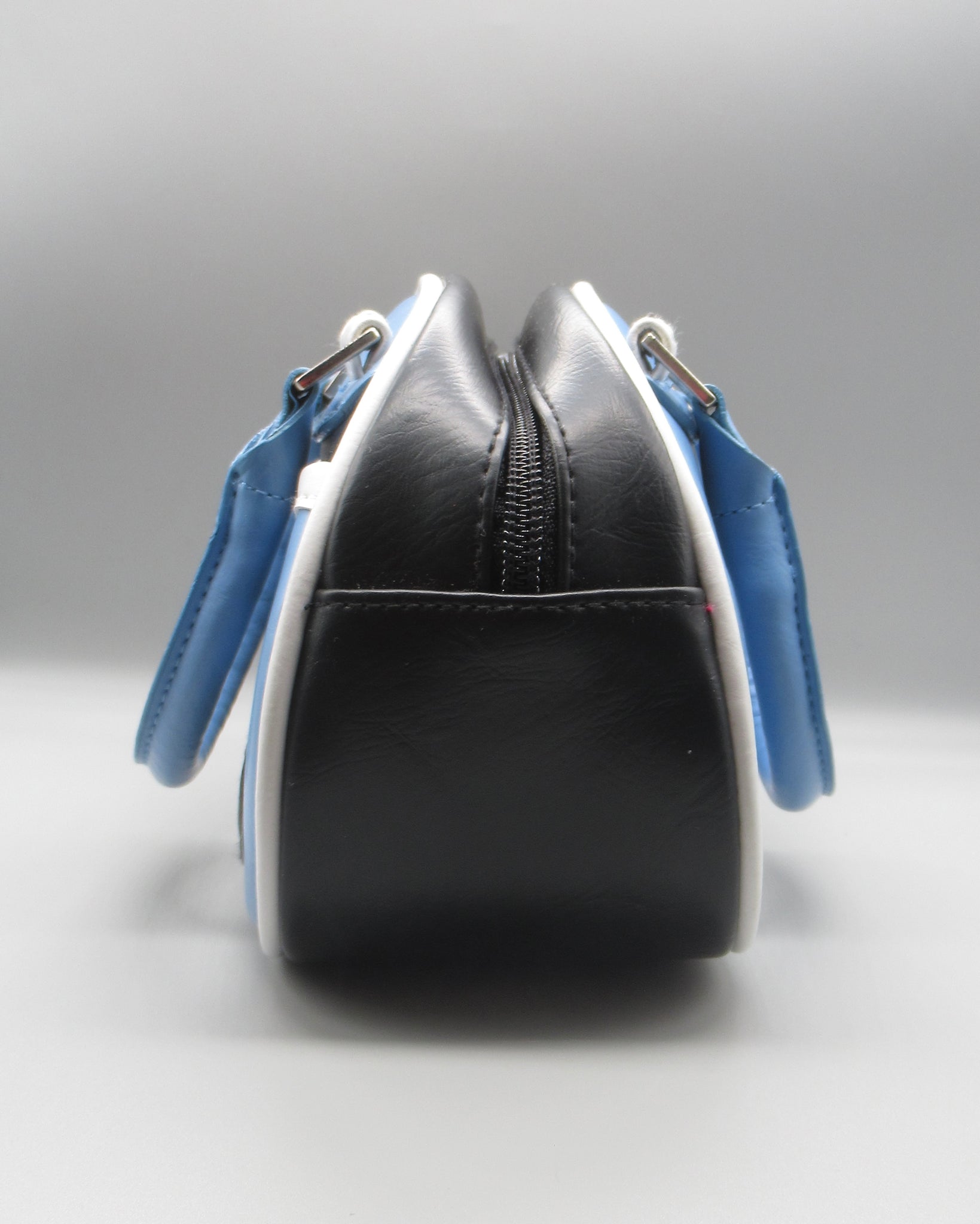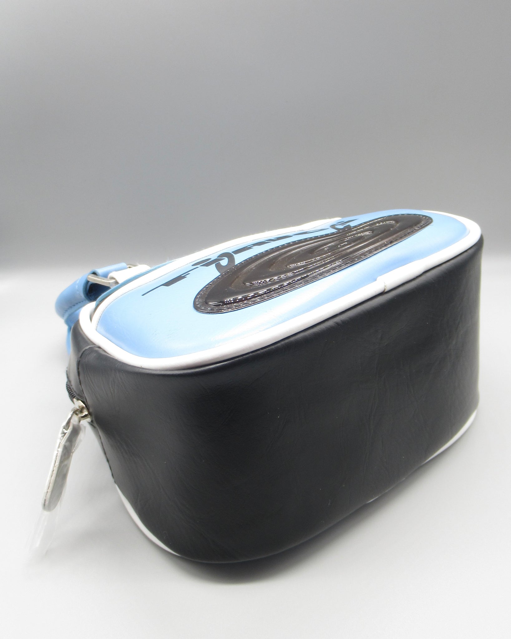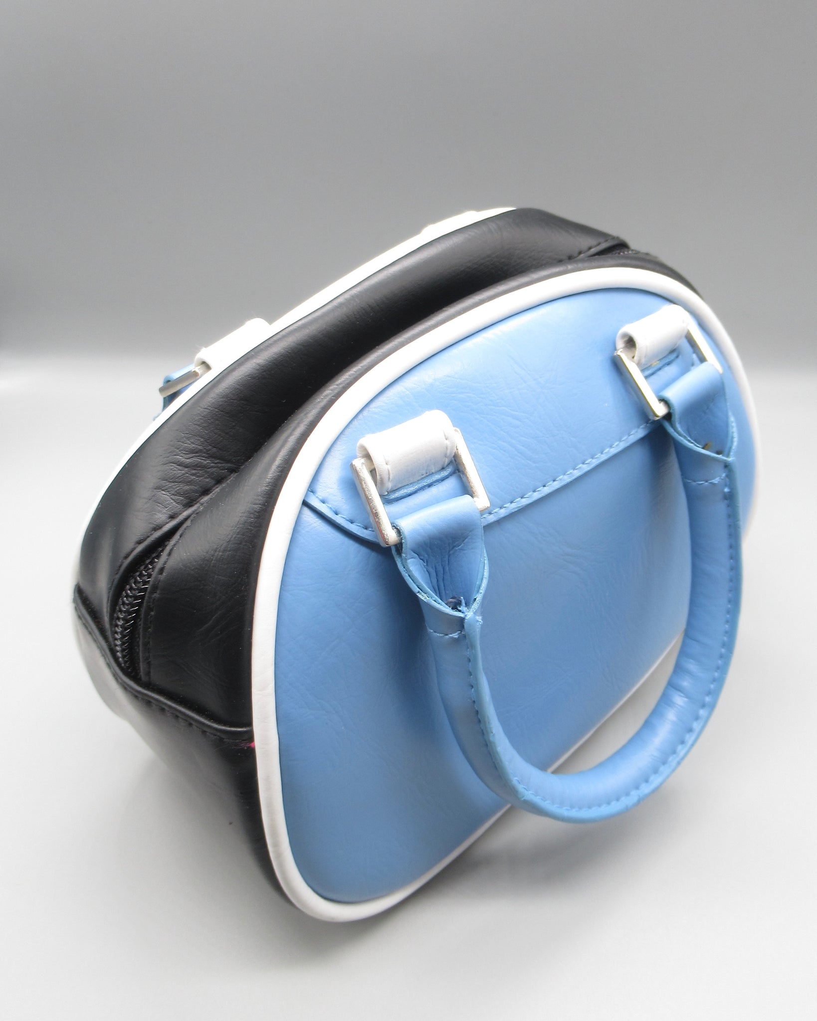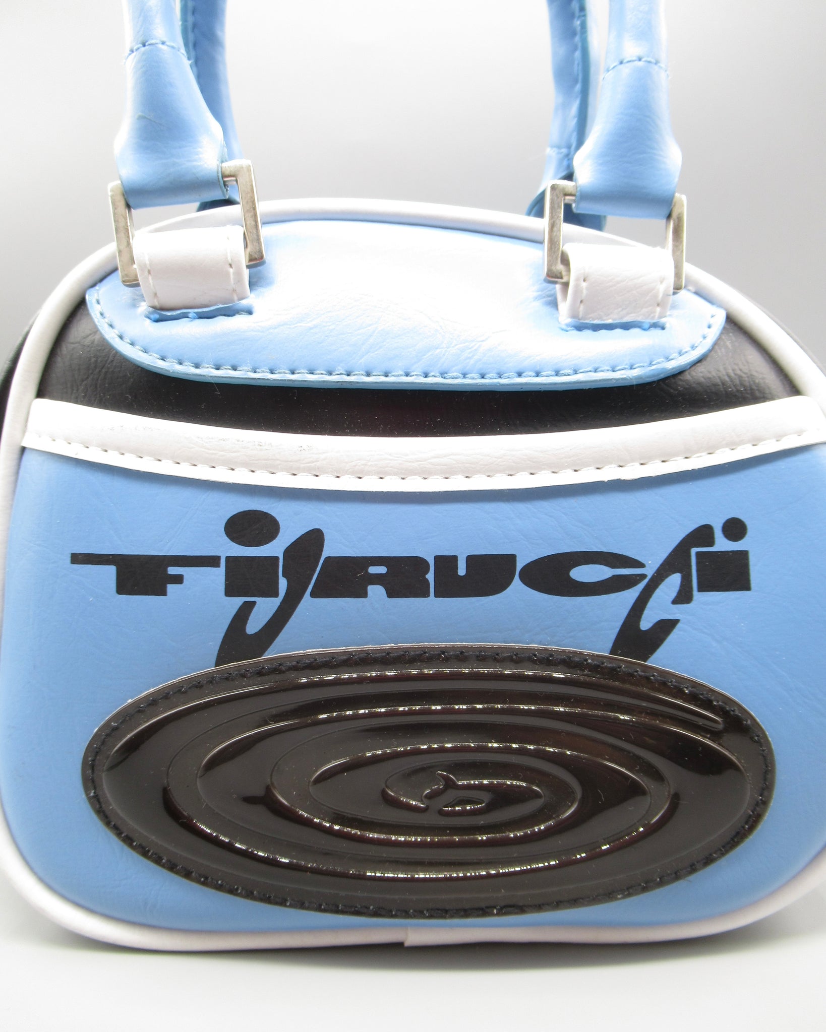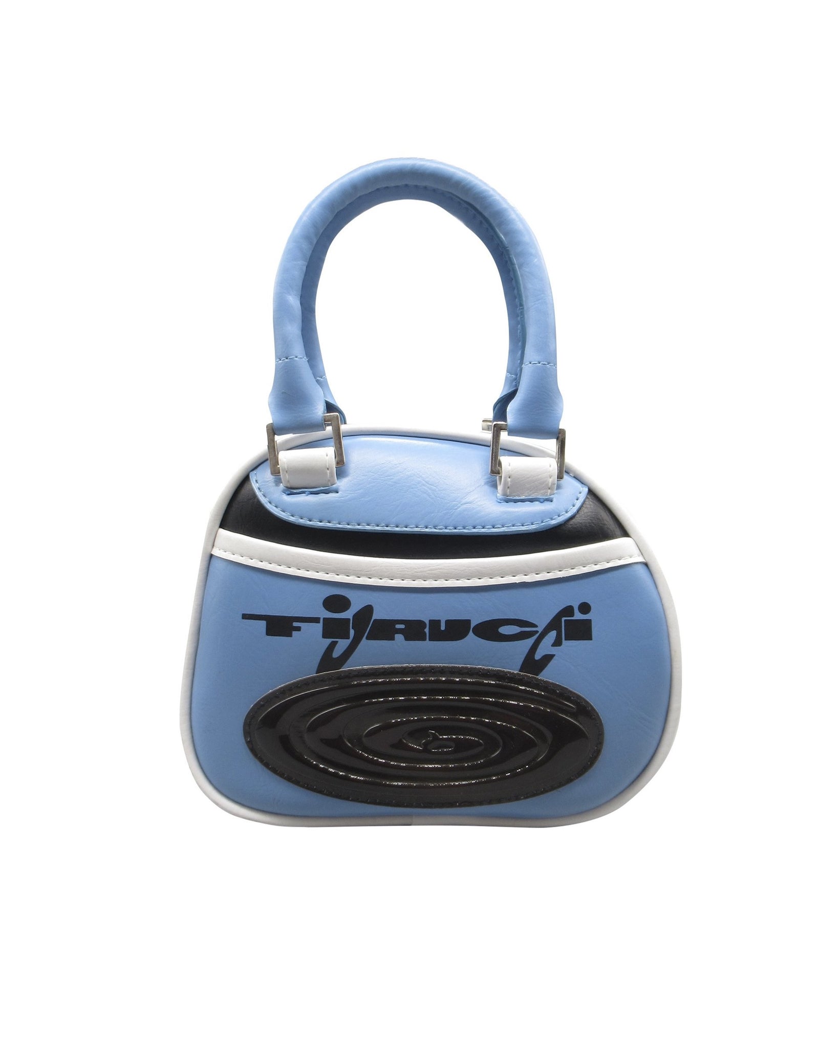 Mini borsa azzurra e nera da portare a mano, Fiorucci.