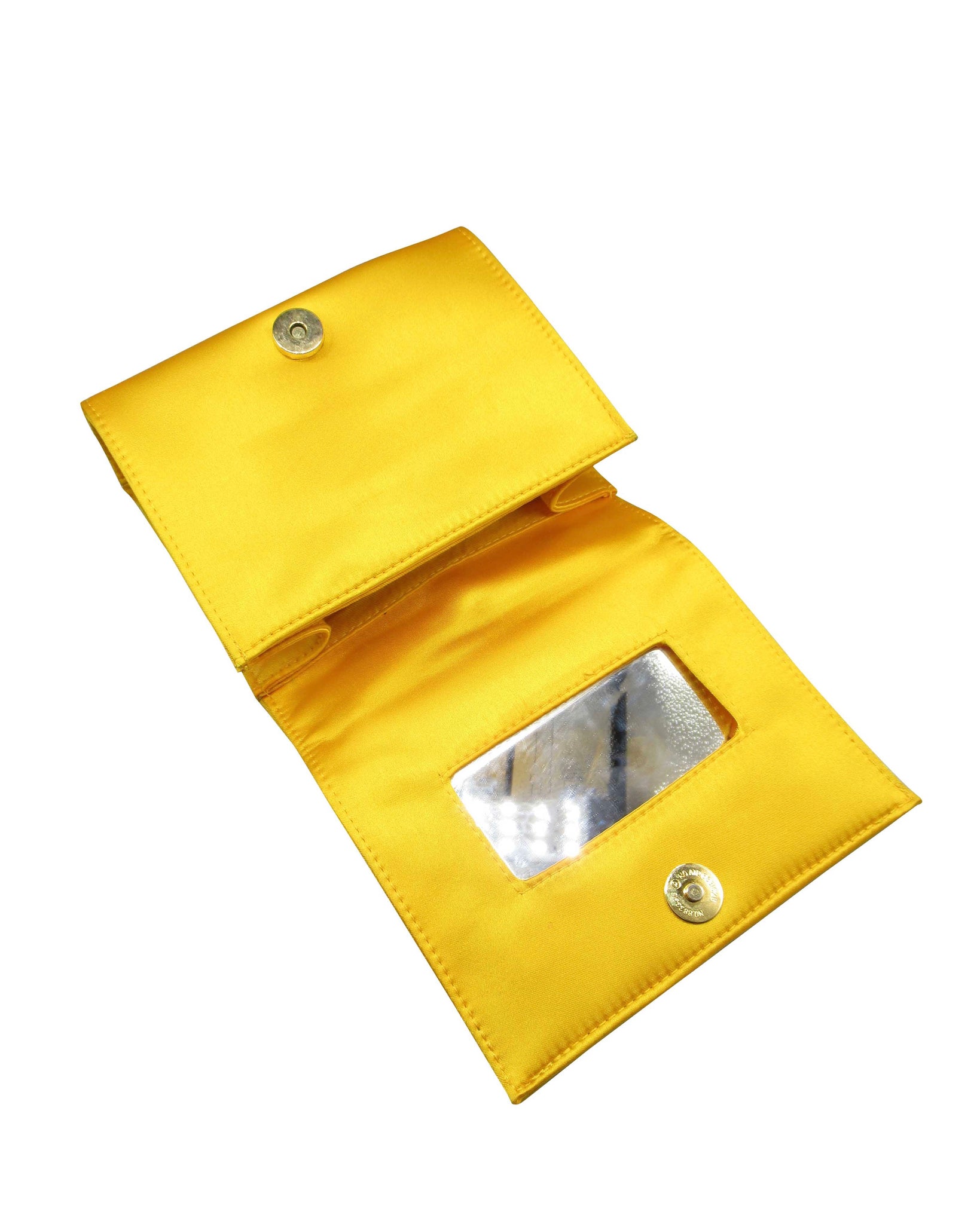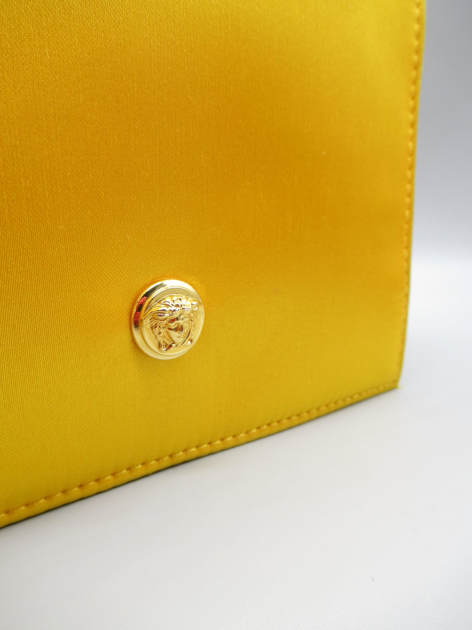 Borsa a mano di raso gialla con specchio all'interno Versace .