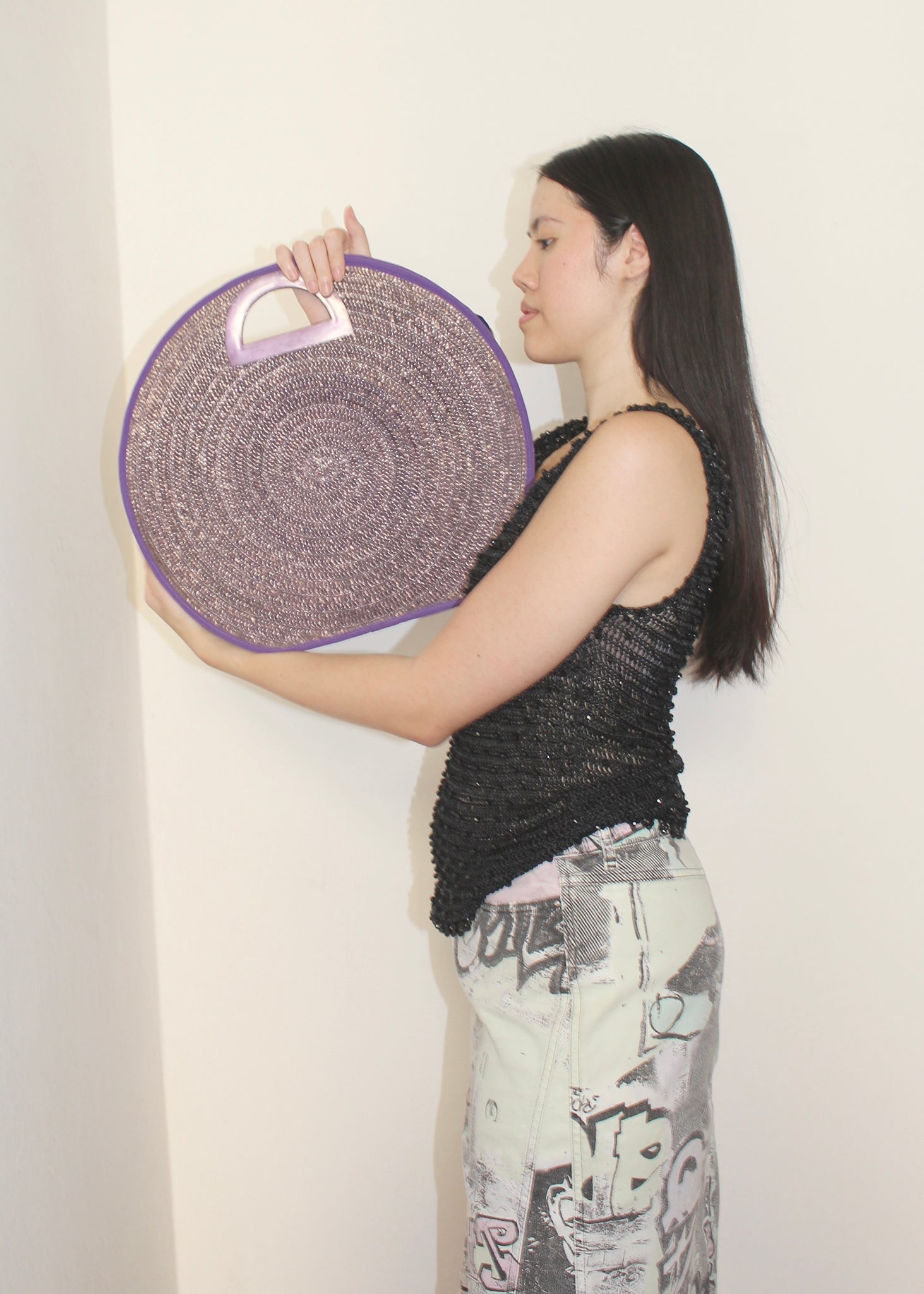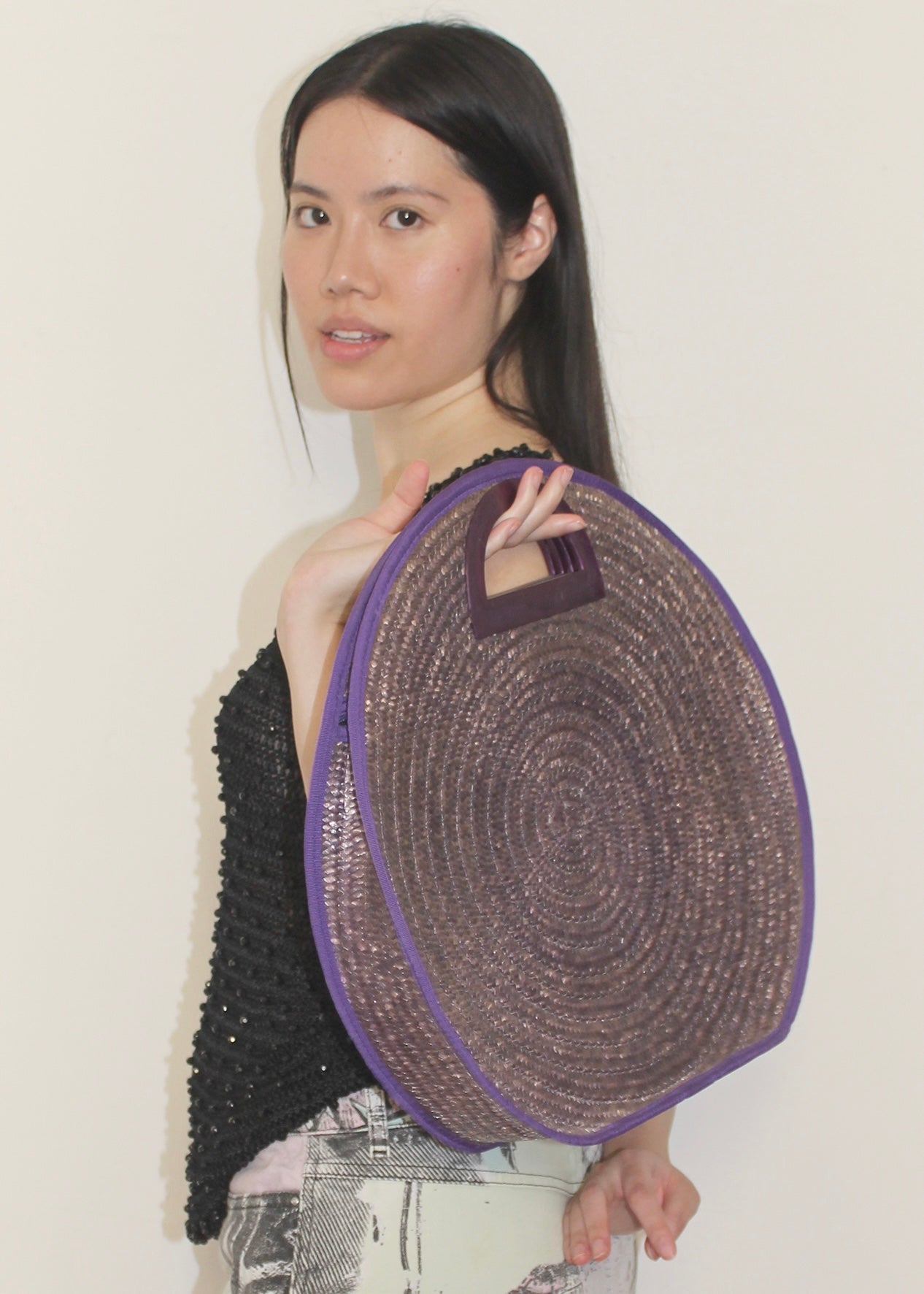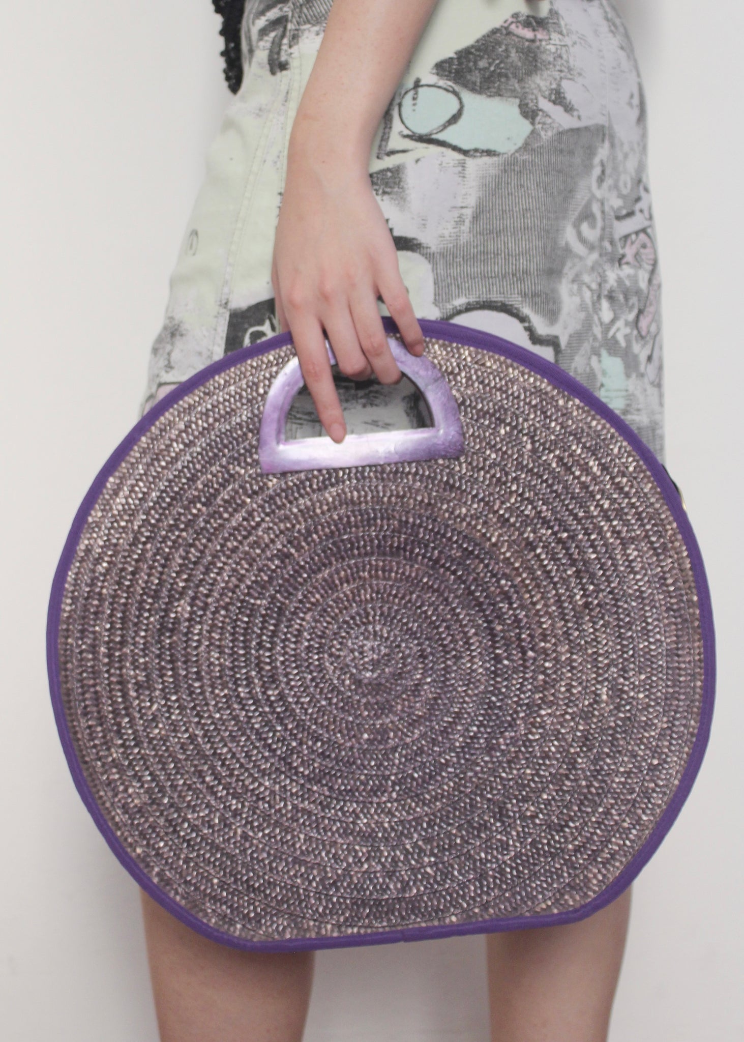 Borsa in vimini tonda color viola, L insolito Vintage.