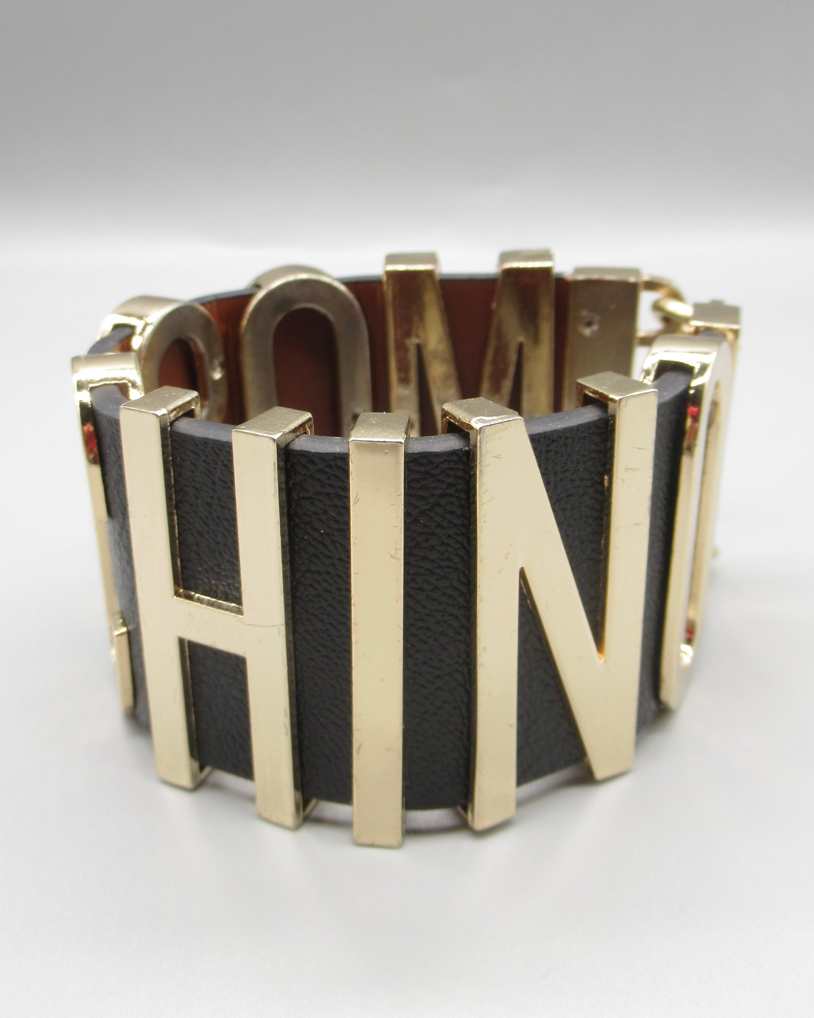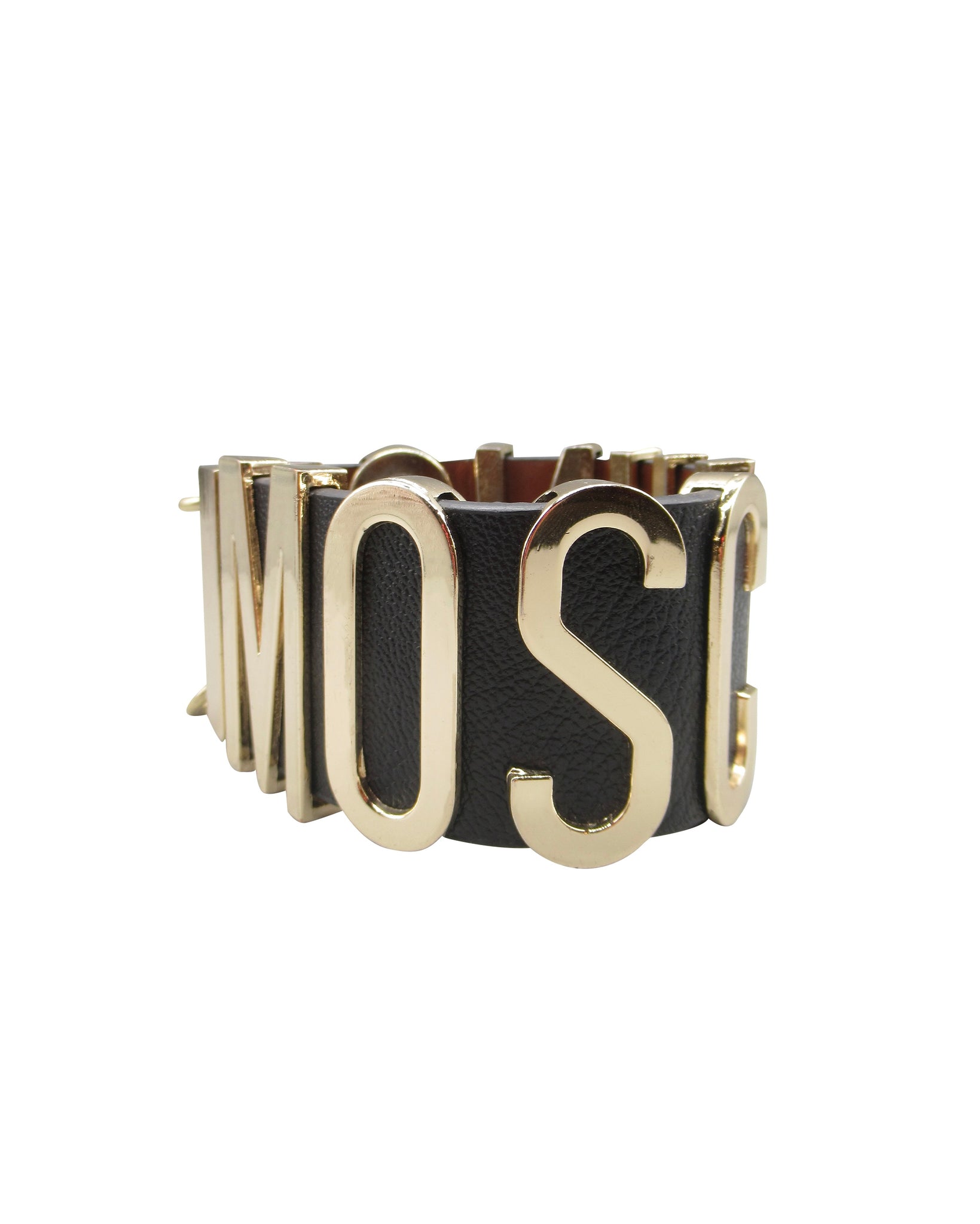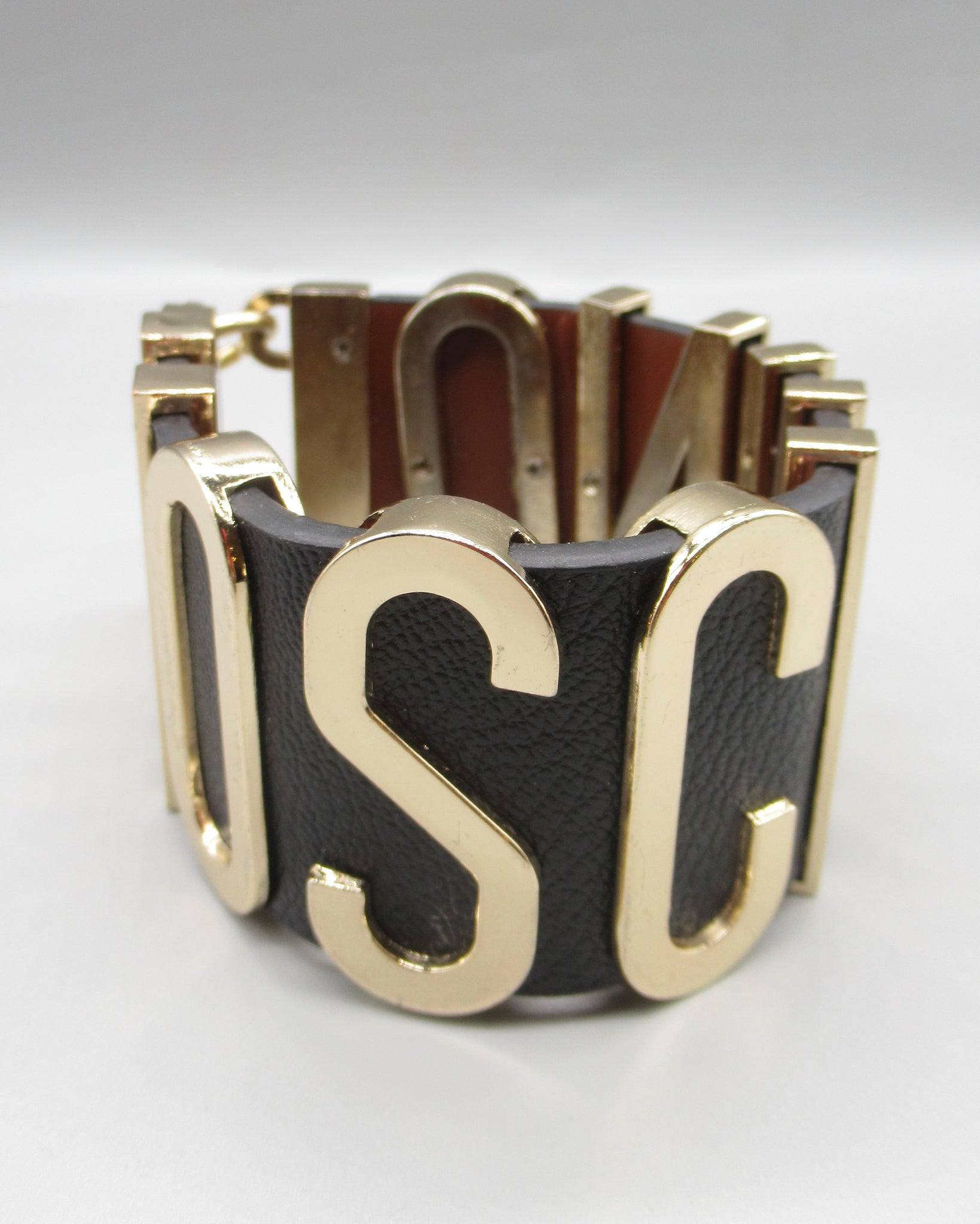 Bracciale vintage con cinturino in pelle e lettere dorate Moschino.