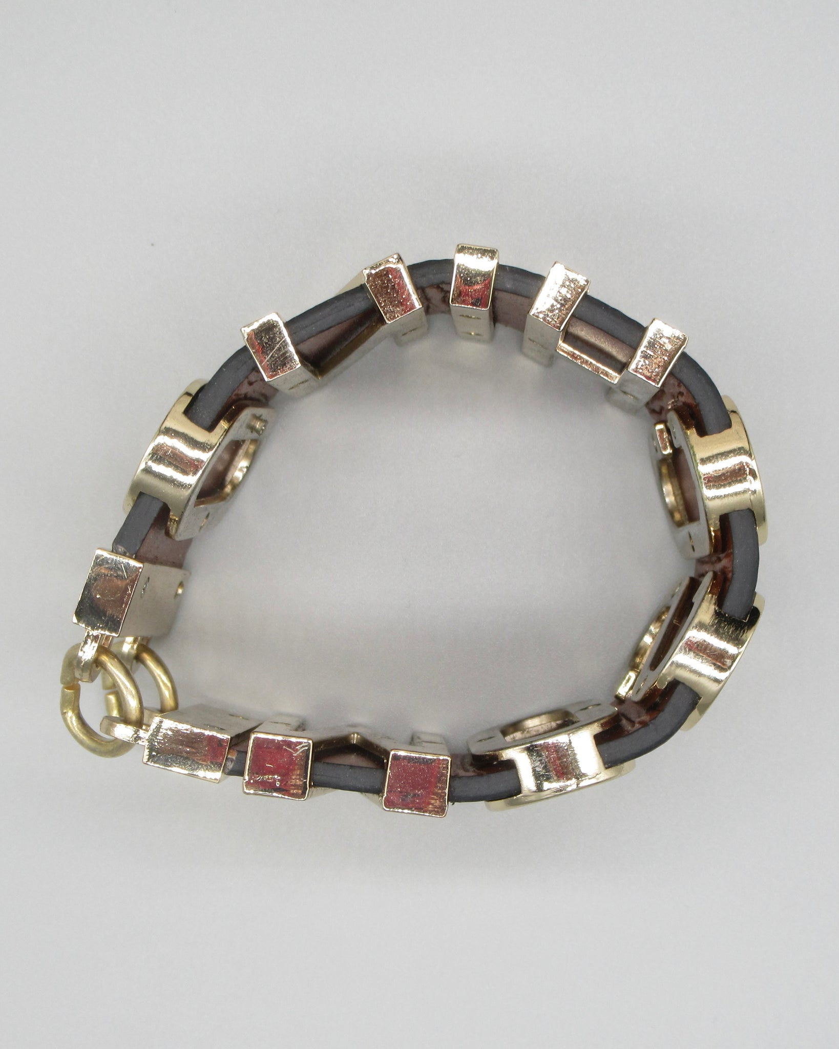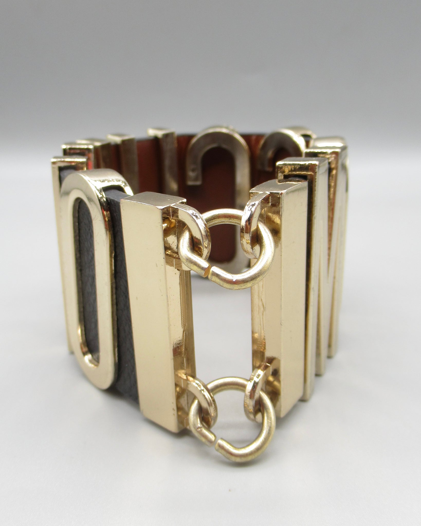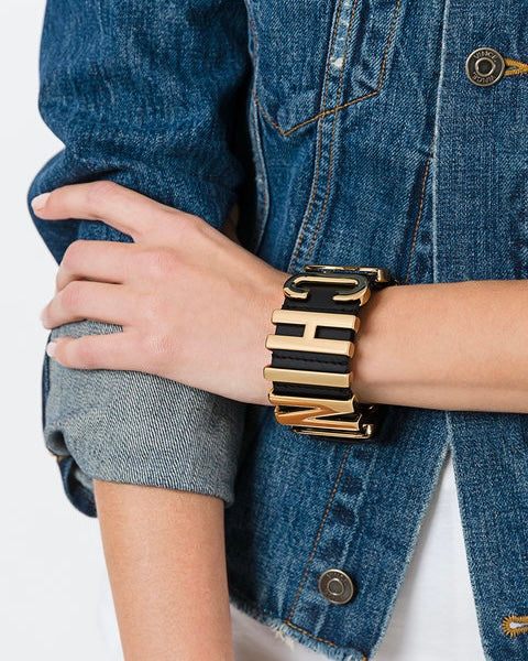 Bracciale vintage con cinturino in pelle e lettere dorate Moschino.