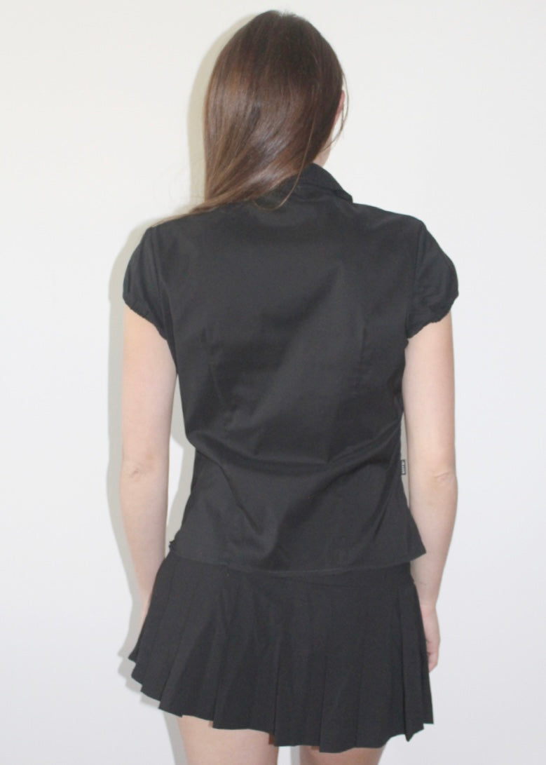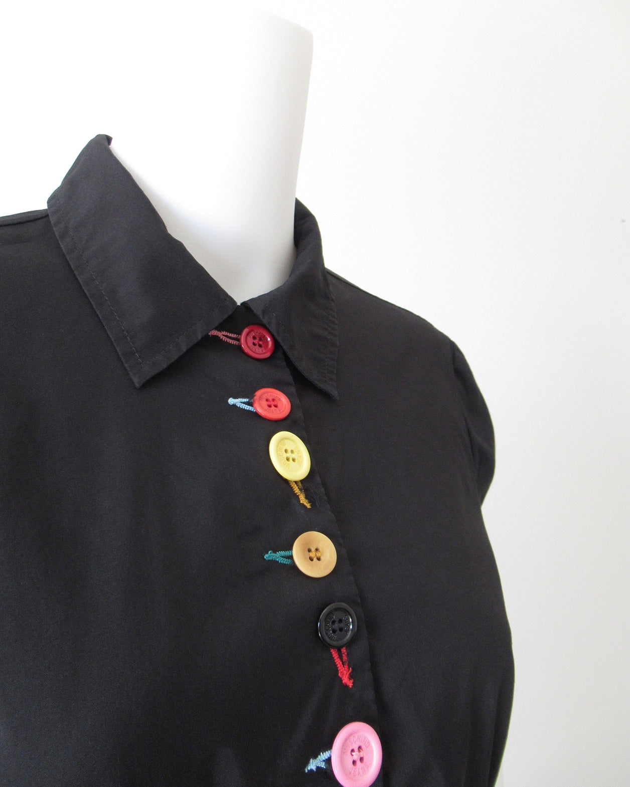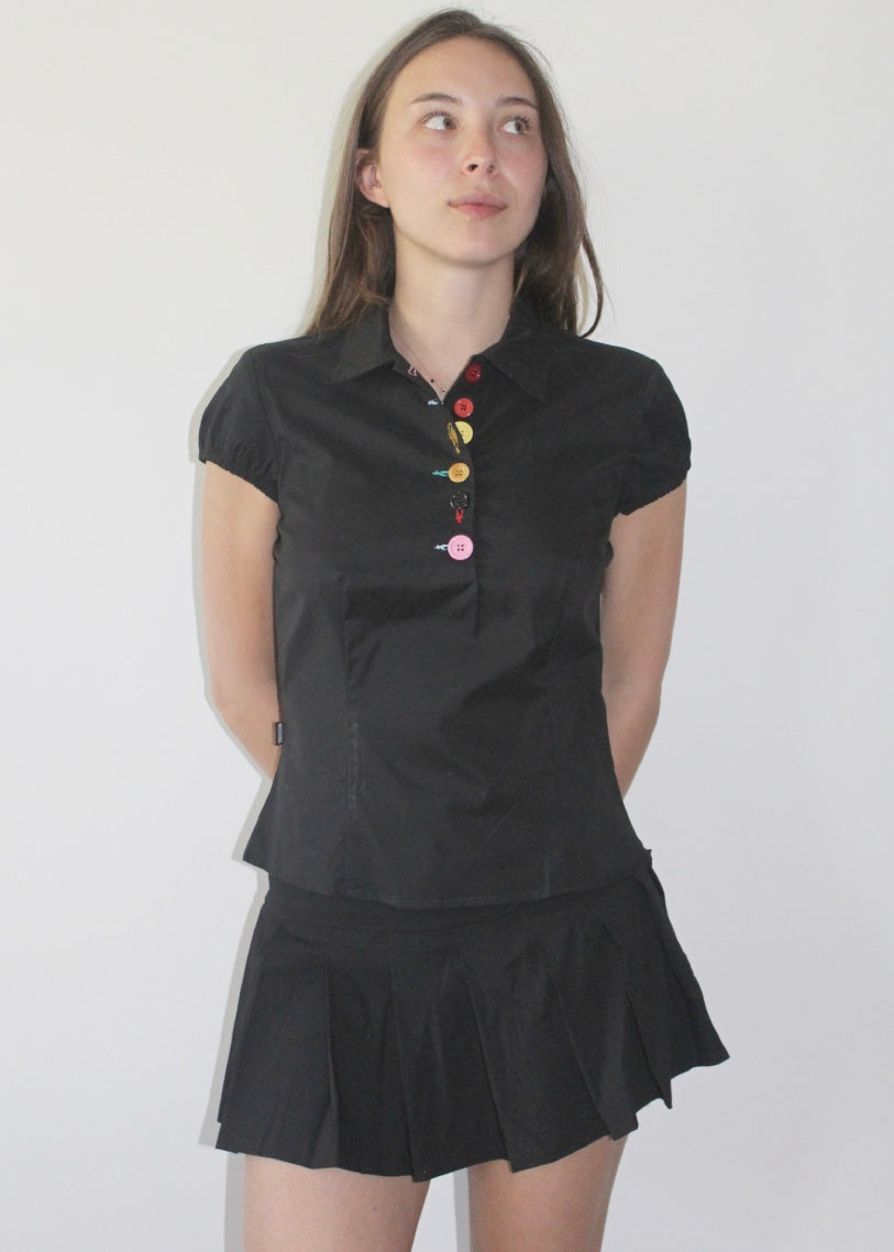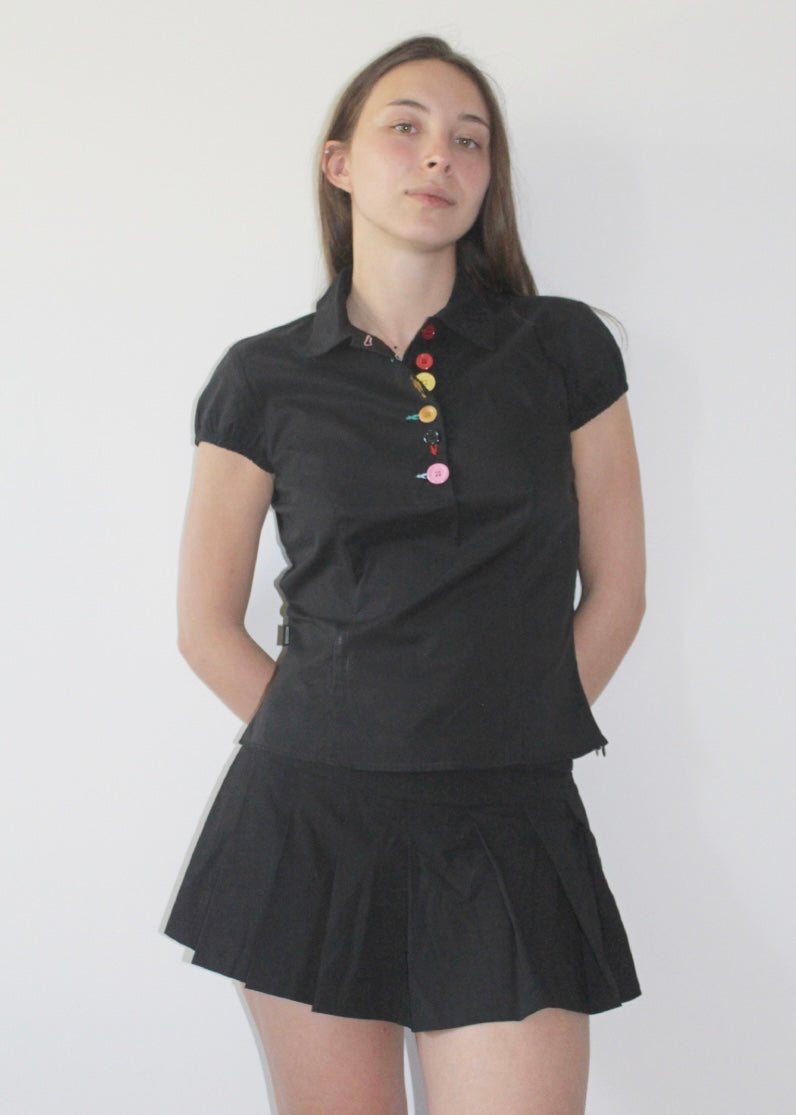 Camicia nera mezza manica con bottoni e asole colorate Moschino.