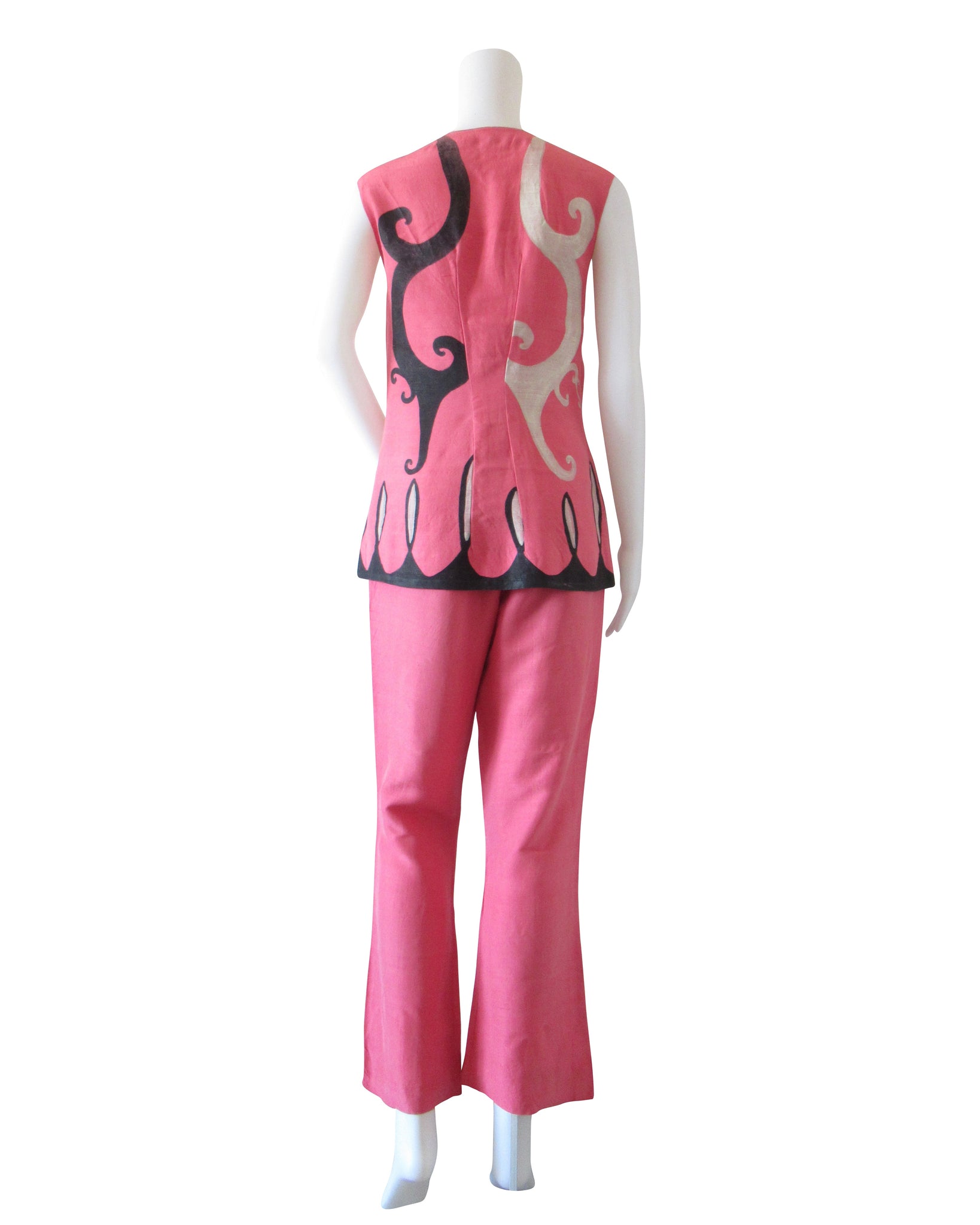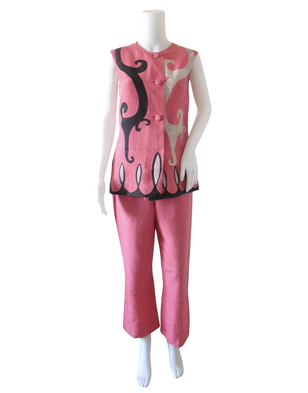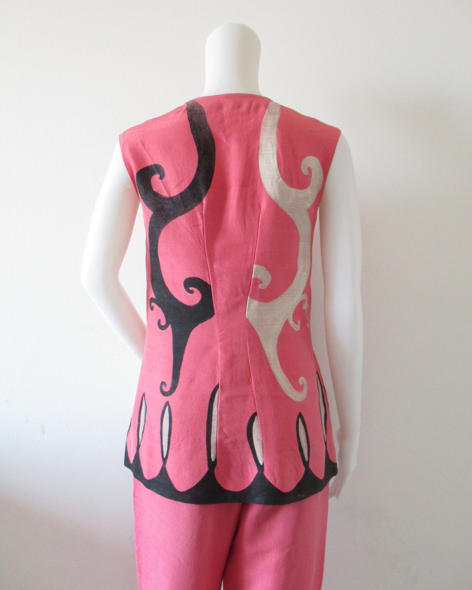 Completo due pezzi di seta rosa dipinto a mano Balenciaga.