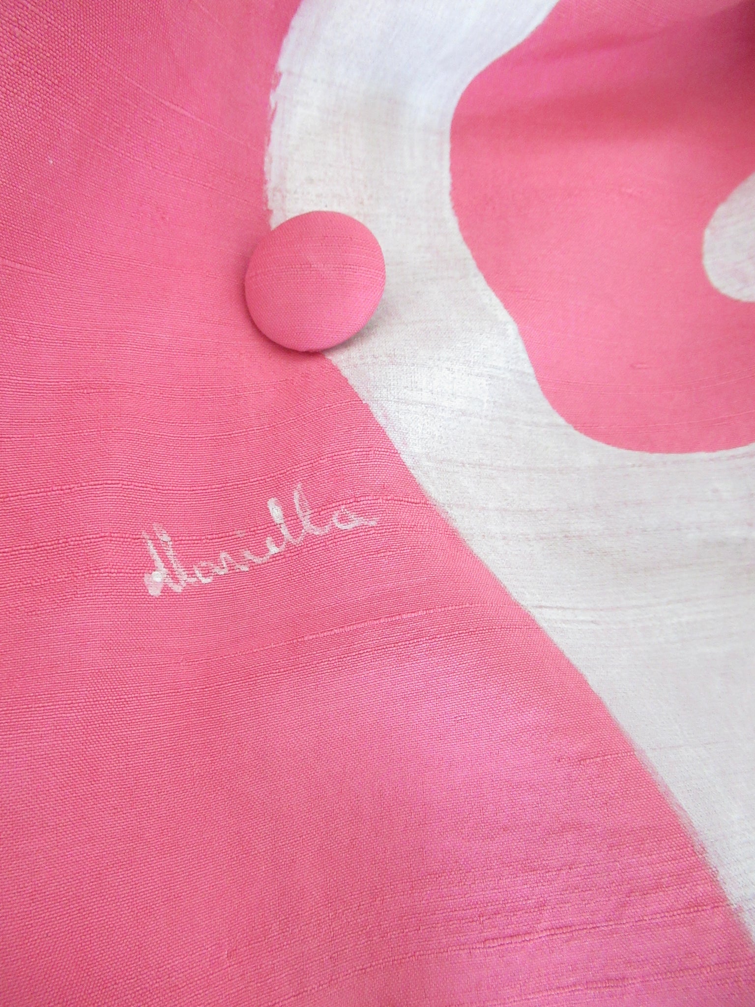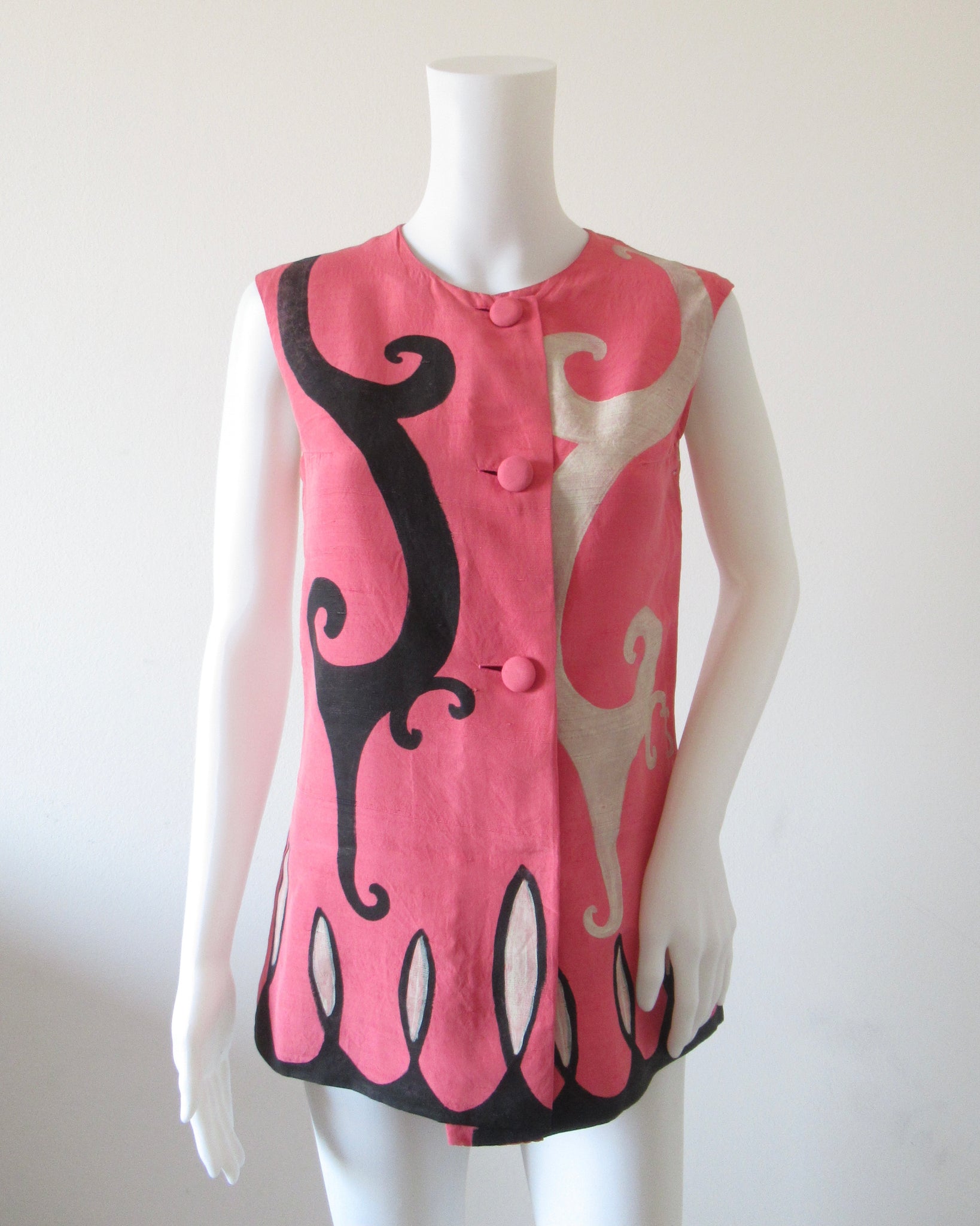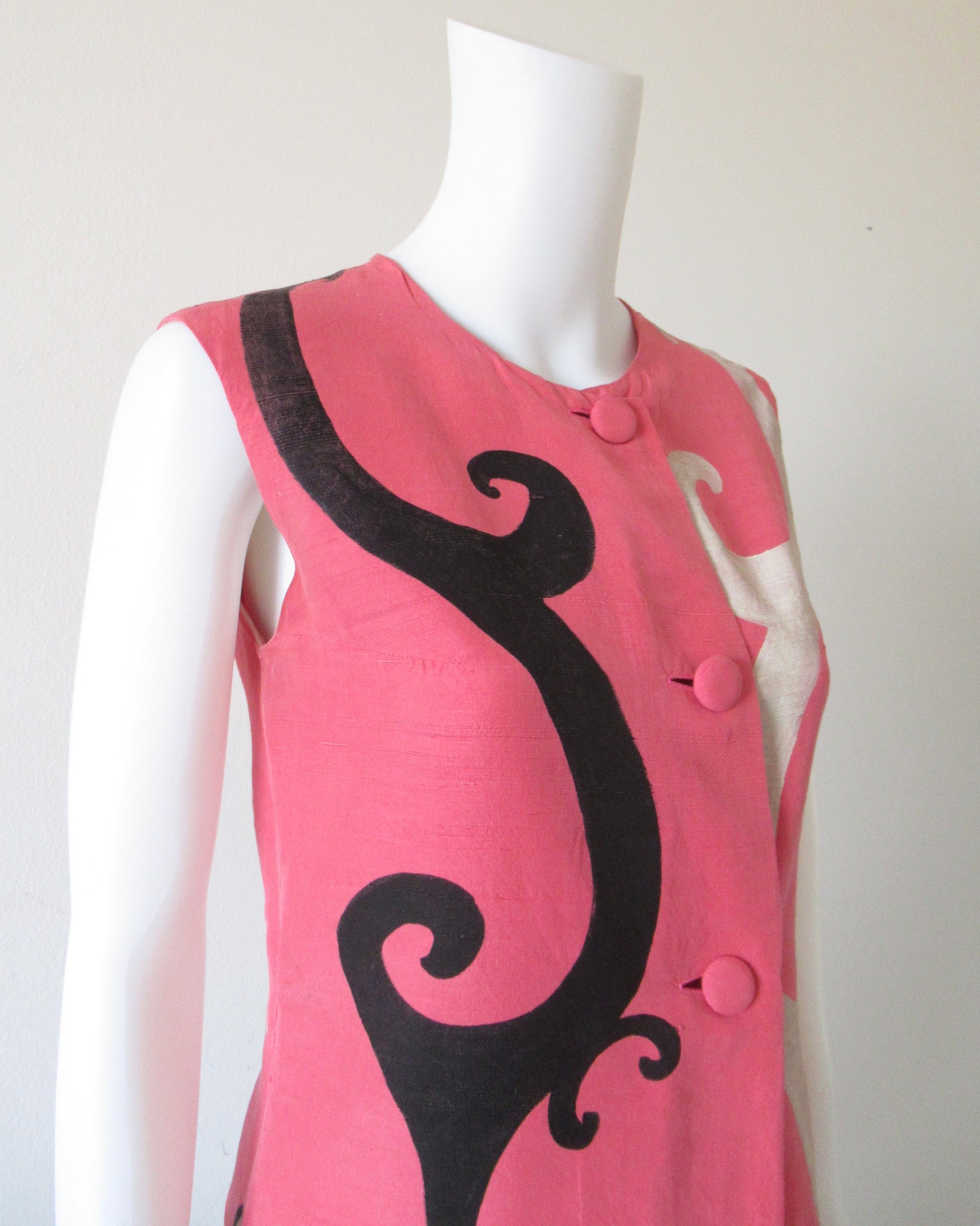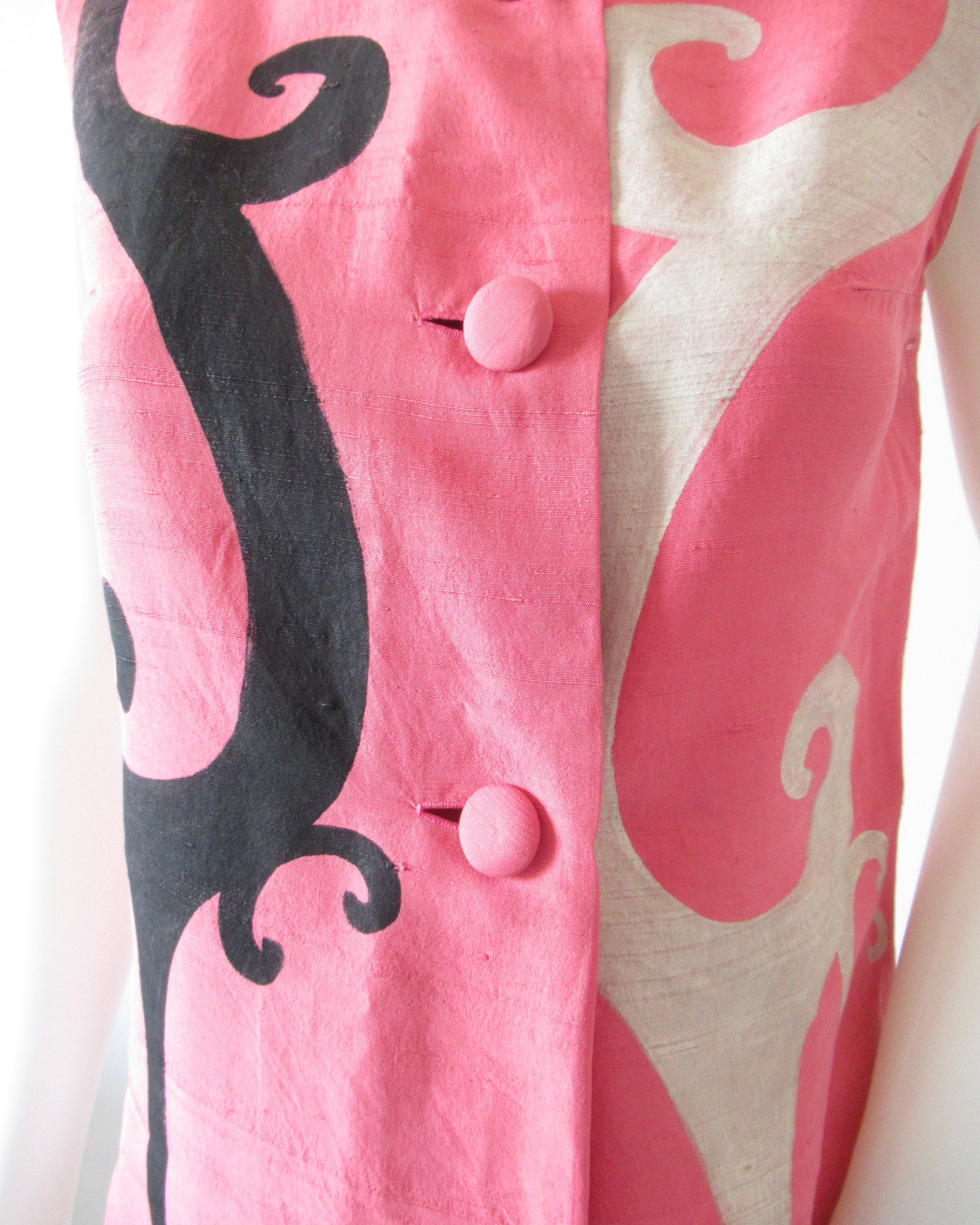 Completo due pezzi di seta rosa dipinto a mano Balenciaga.