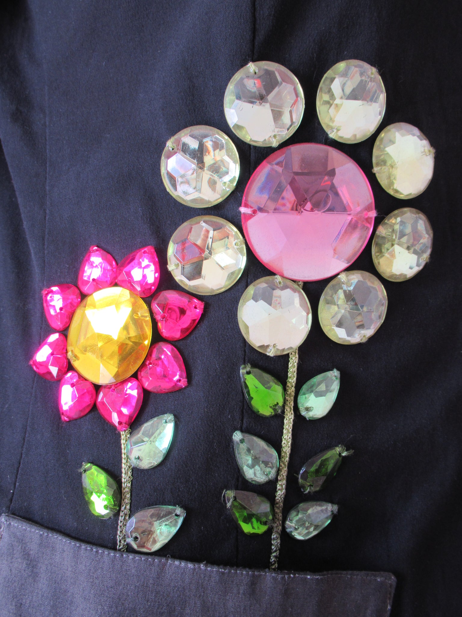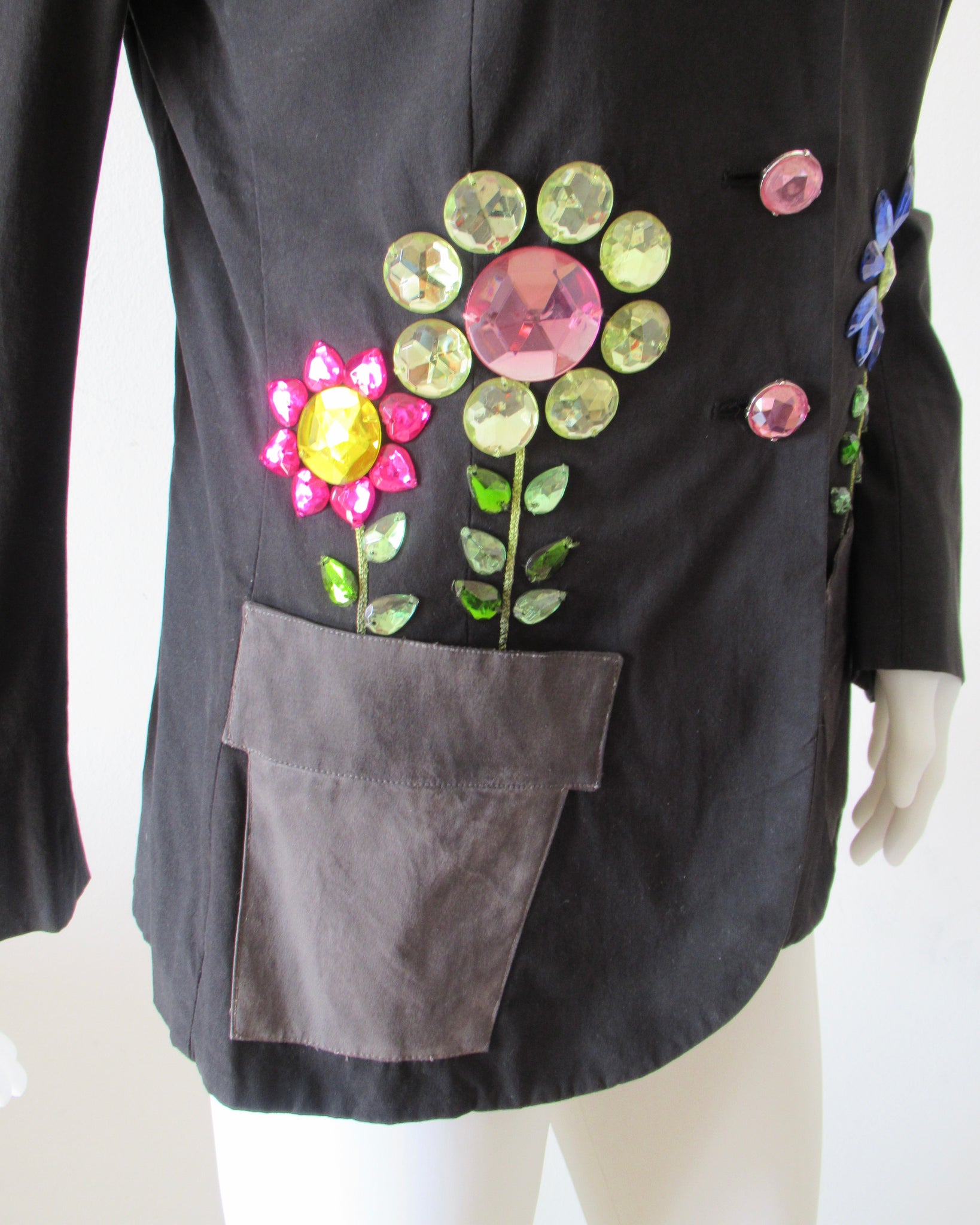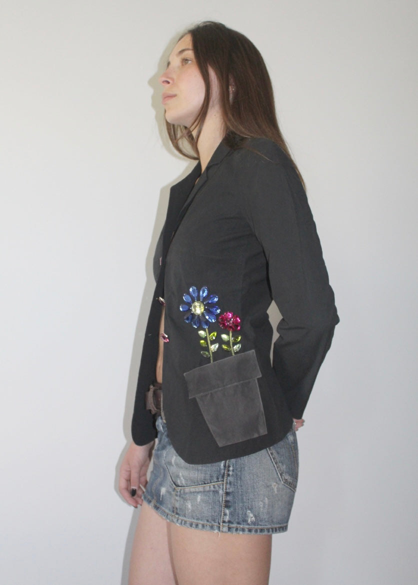 Giacca nera applicazioni fiori nella tasca "vaso" Moschino Cheap&Chic.