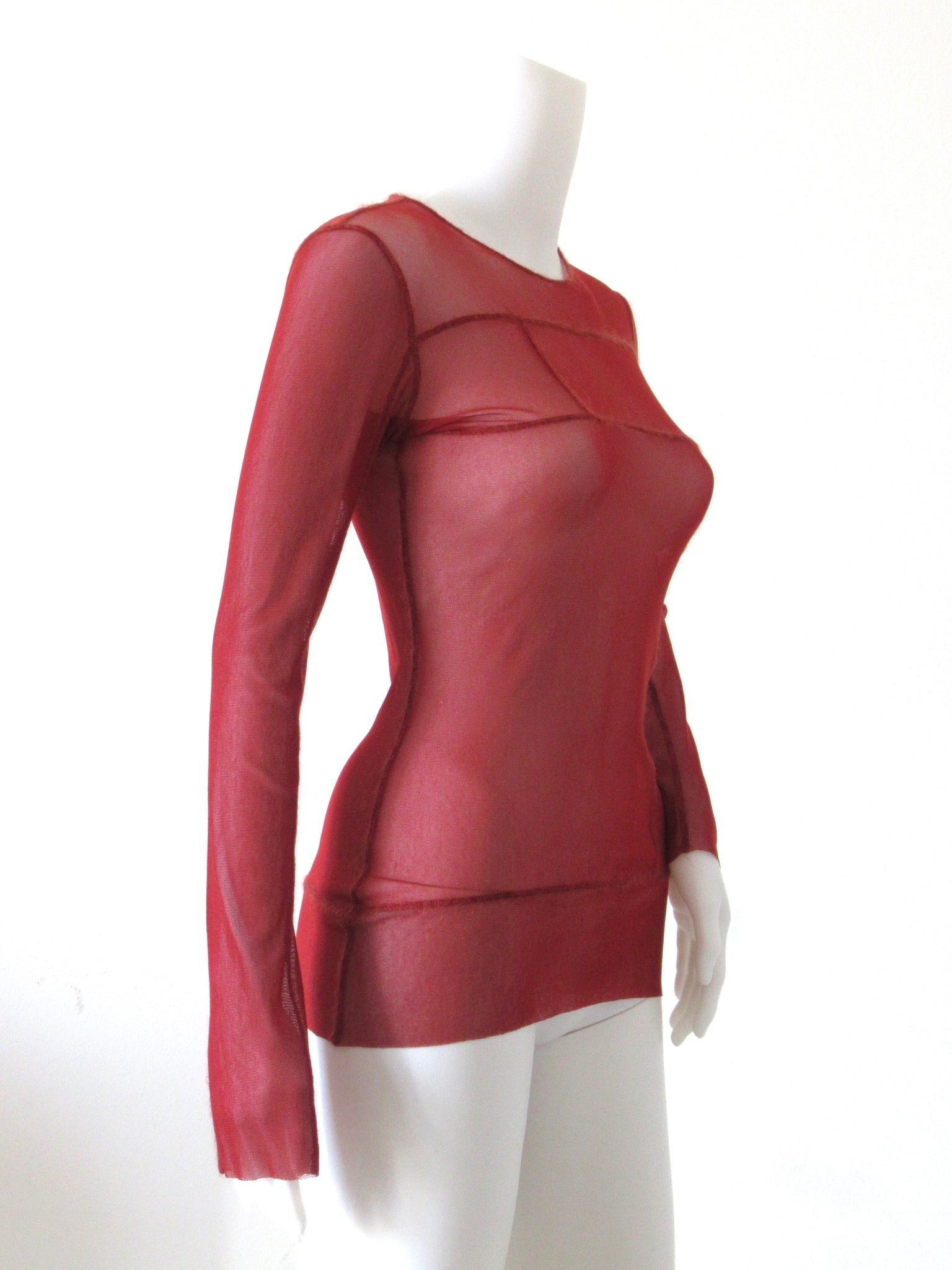 Maglia mesh rossa manica lunga Jean Paul Gaultier.