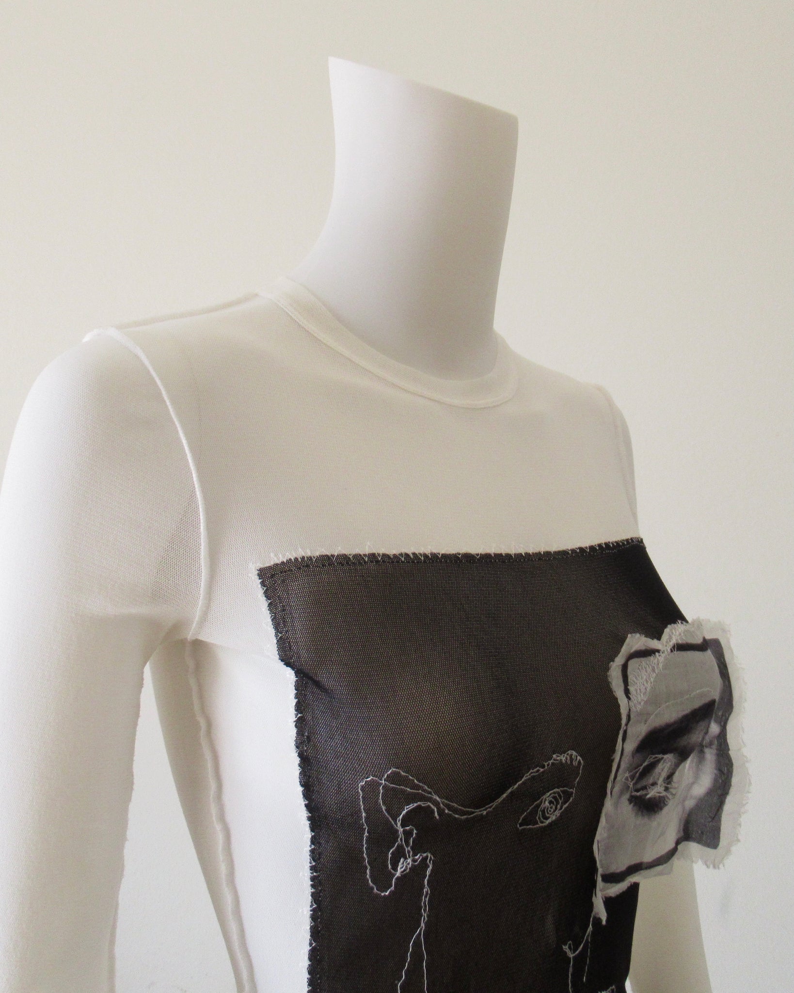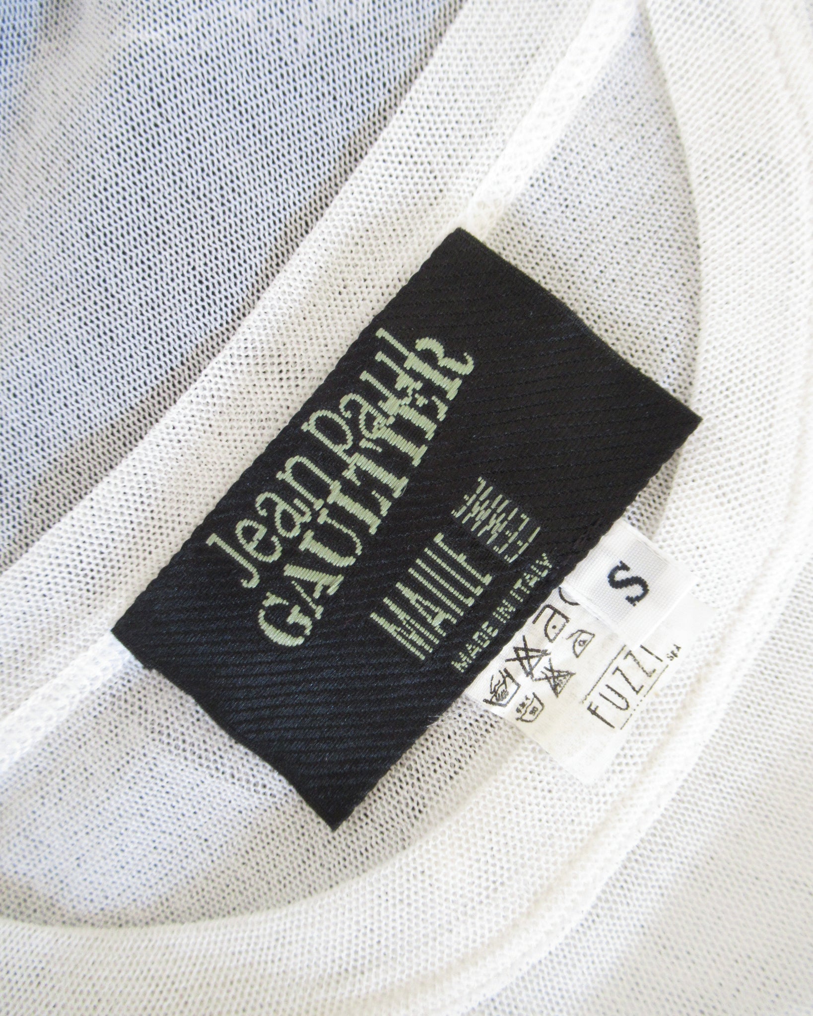 Maglia bianca mesh con quadro e volto Jean Paul Gaultier.