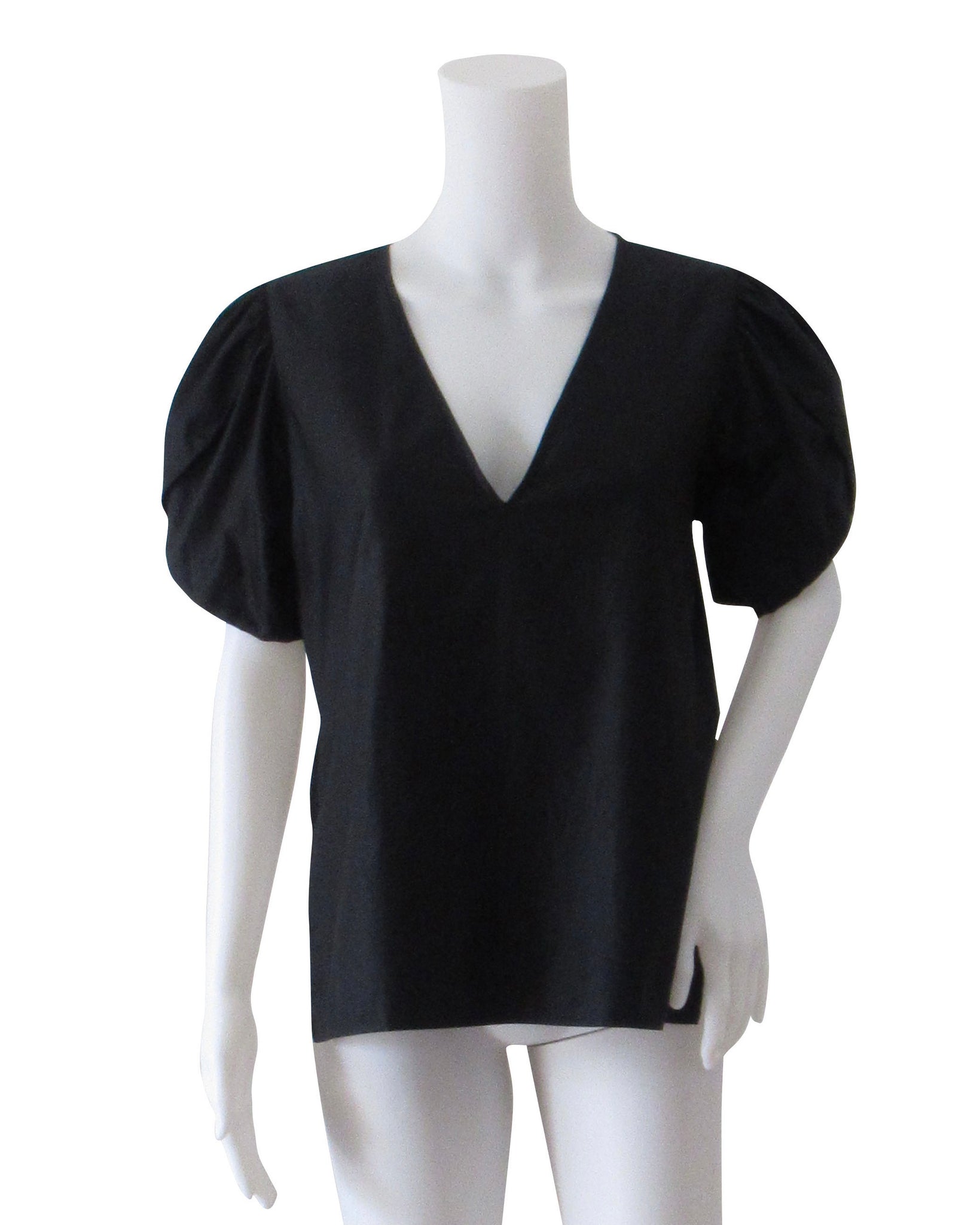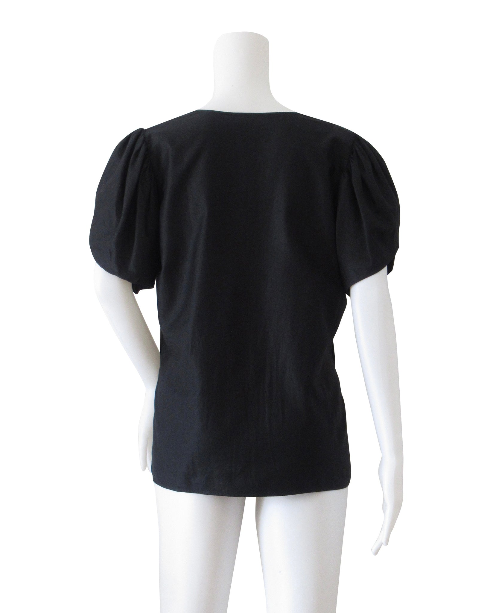 Maglia nera mezza manica a sbuffo Yves Saint Laurent.
