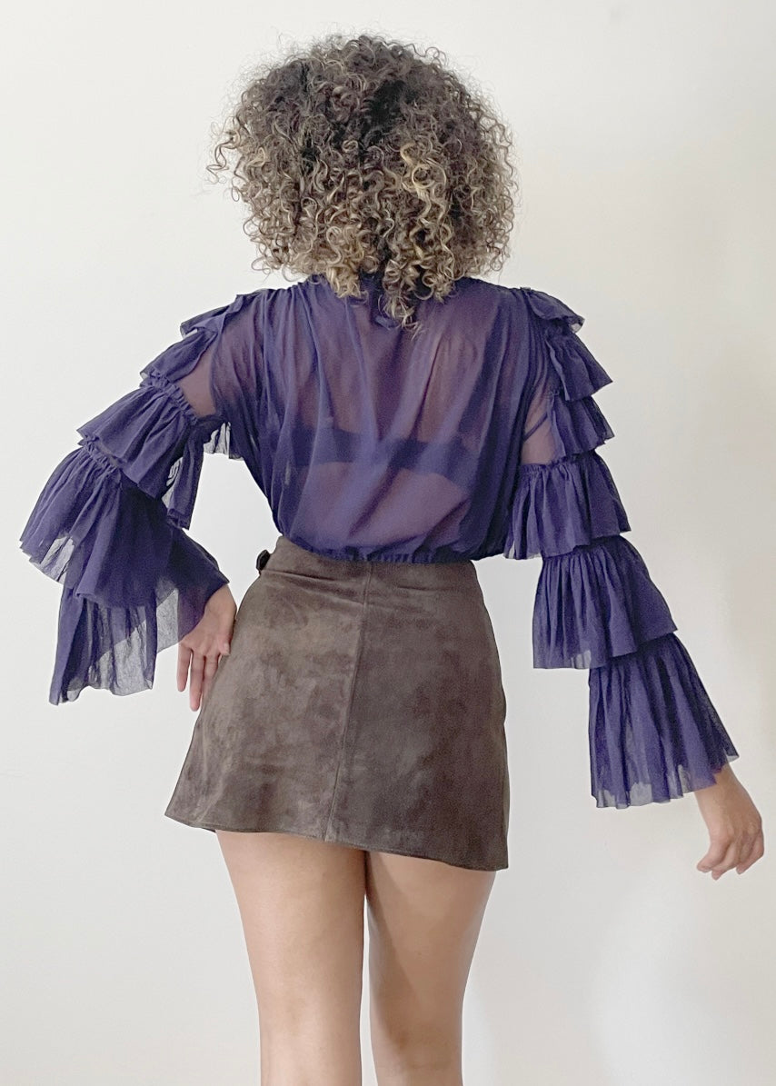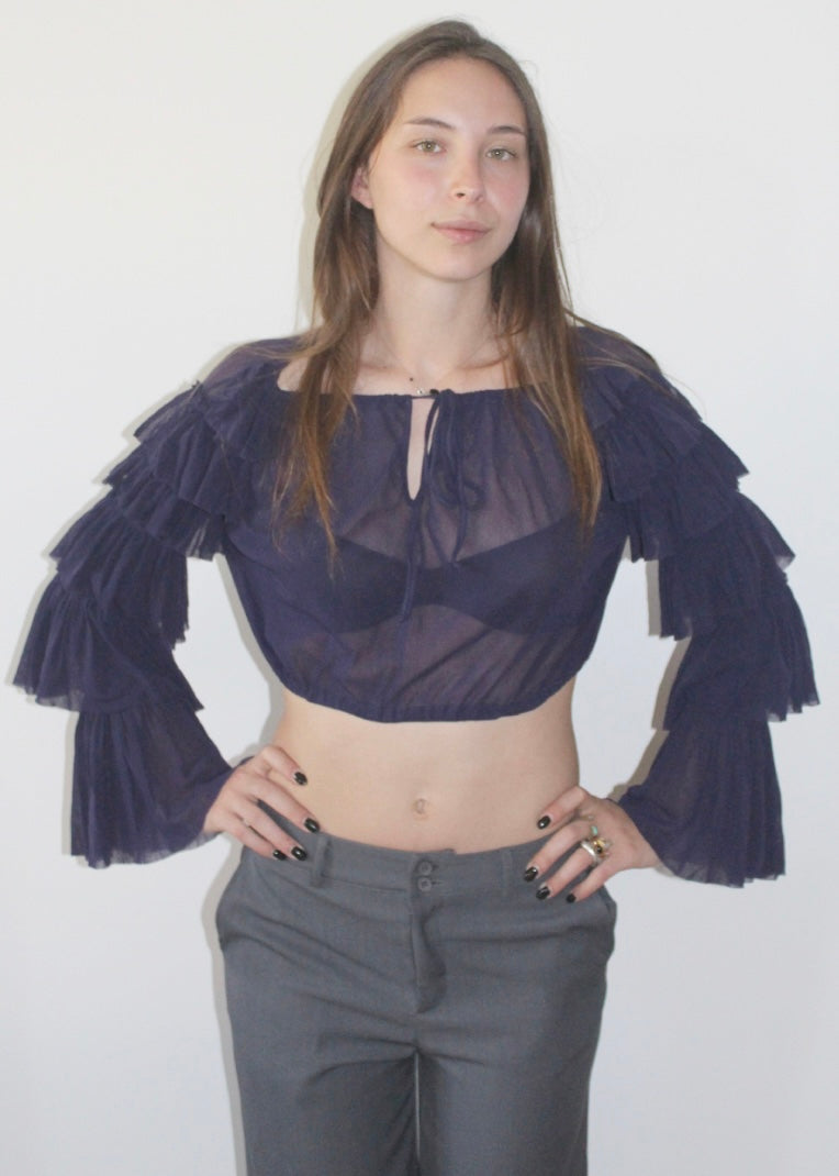 Maglia viola maniche voilant JEAN PAUL GAULTIER