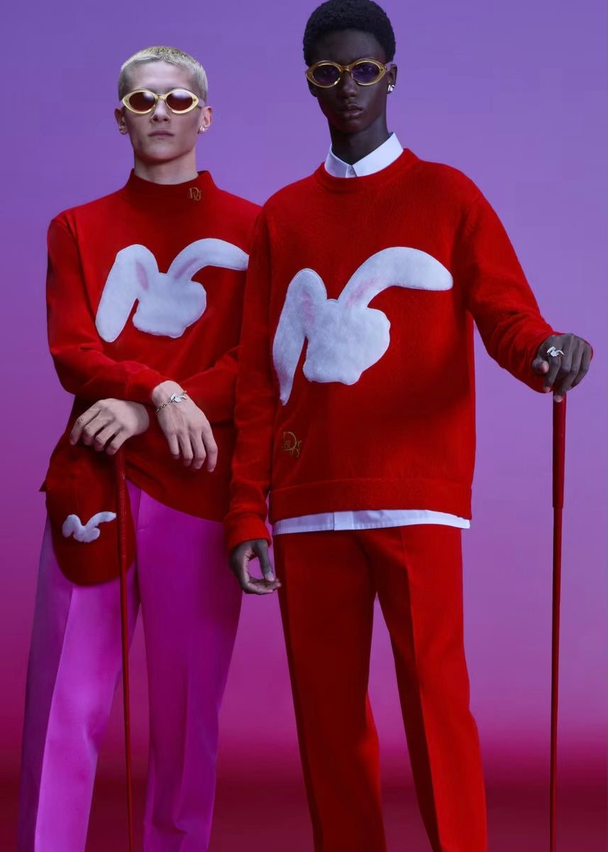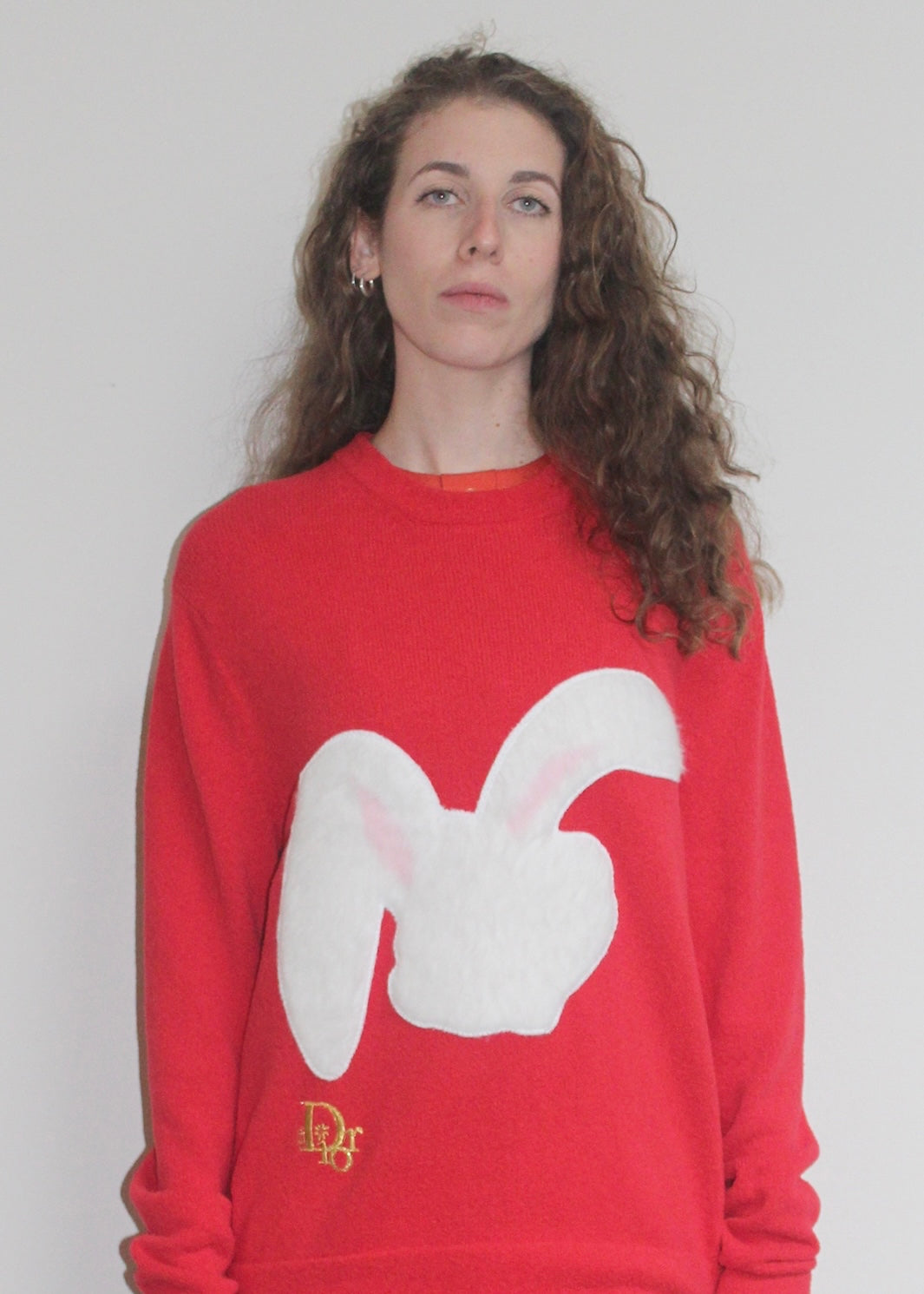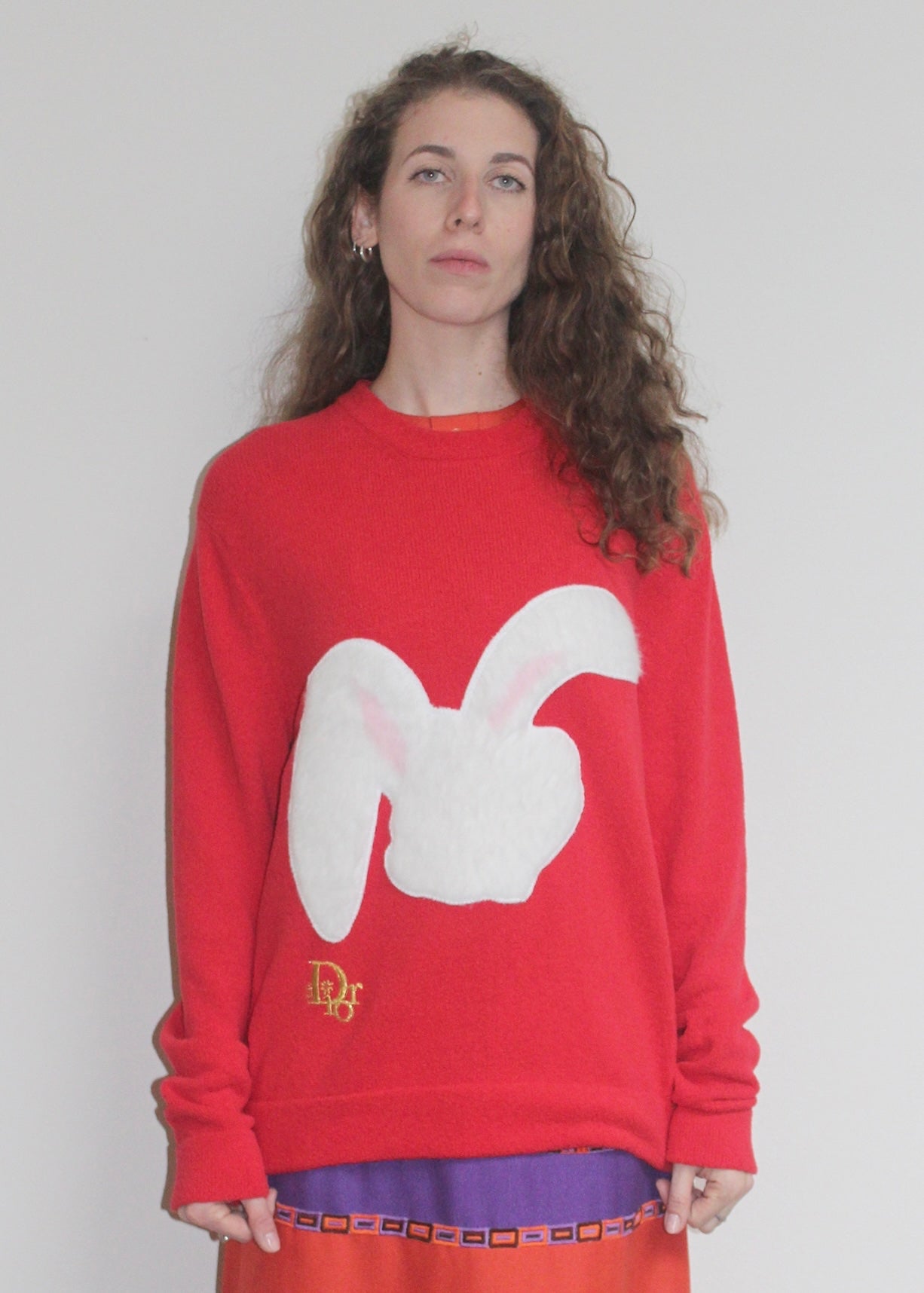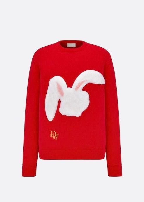 Maglione rosso con patchwork coniglio, Dior ERL in cotone.