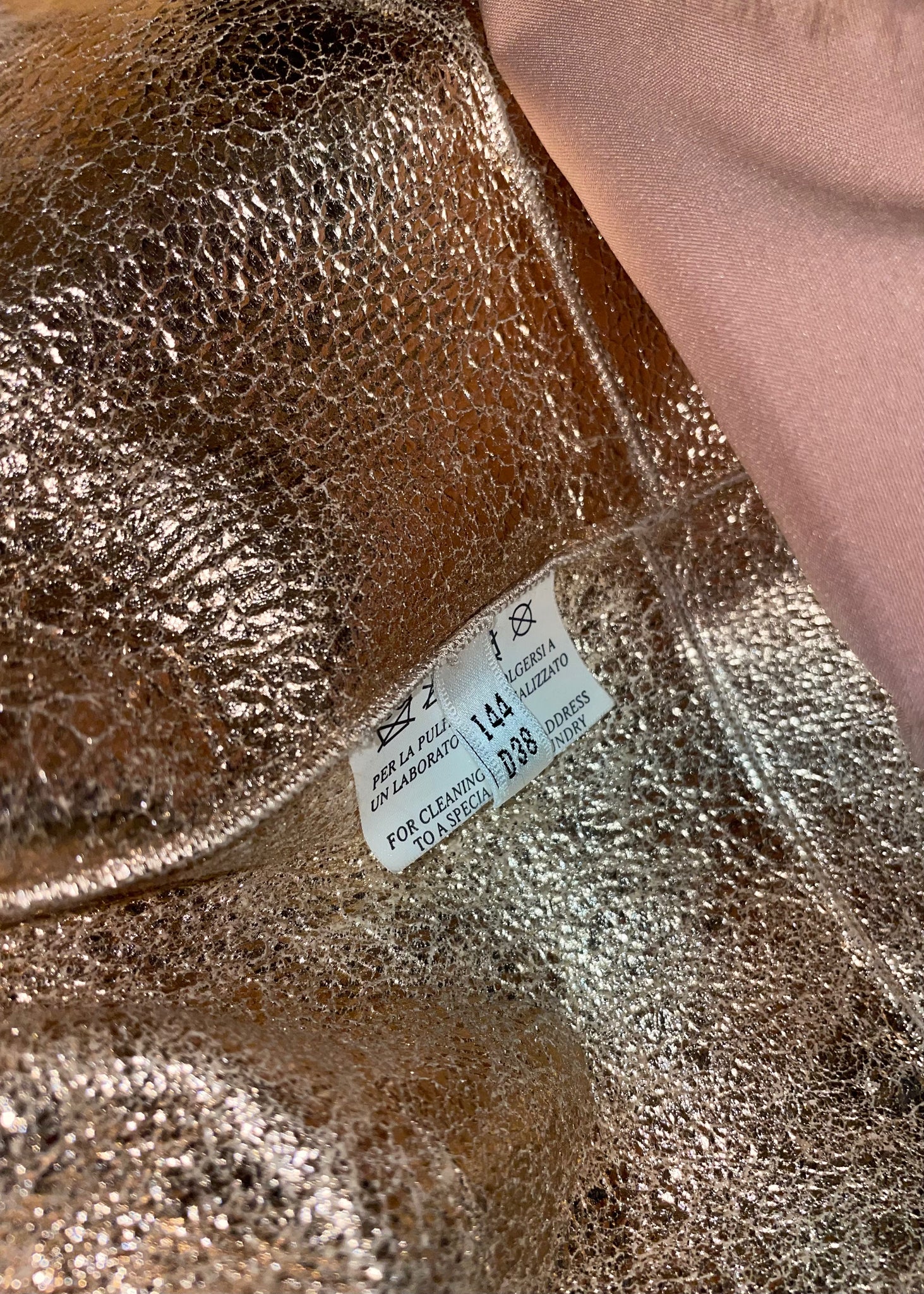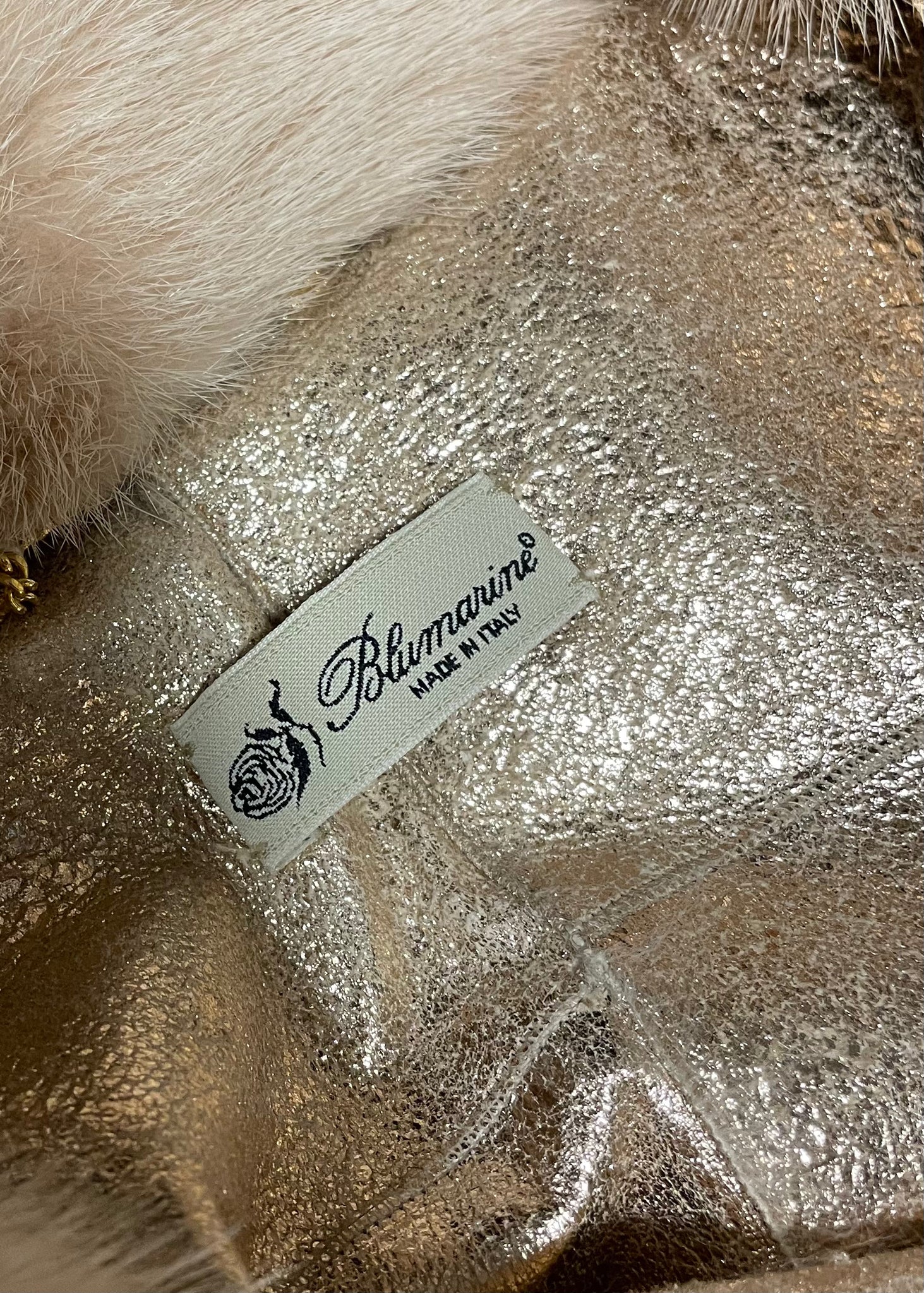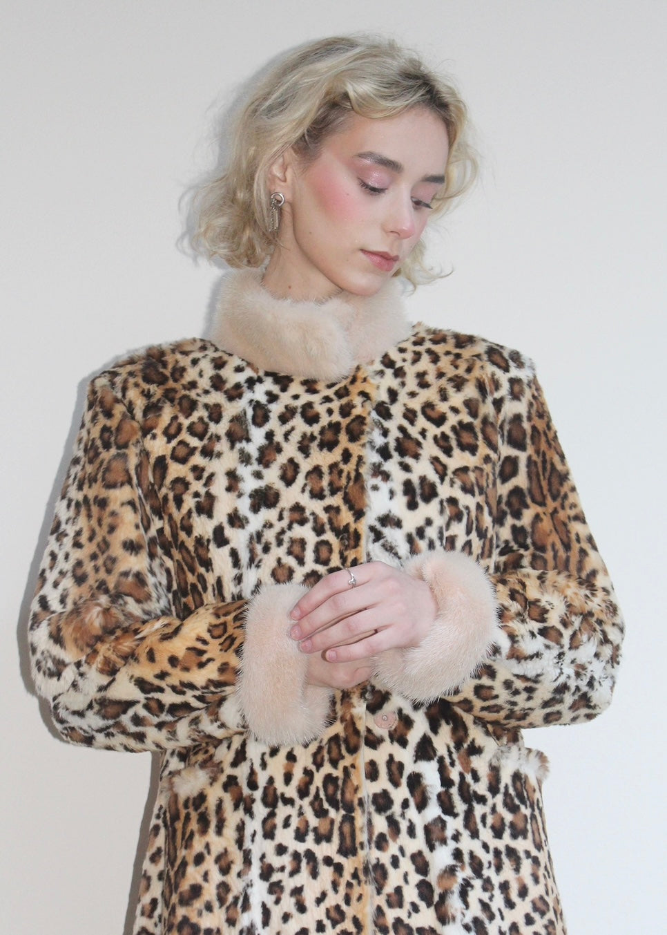 Pelliccia maculata con collo e polsini rosa, Blumarine.