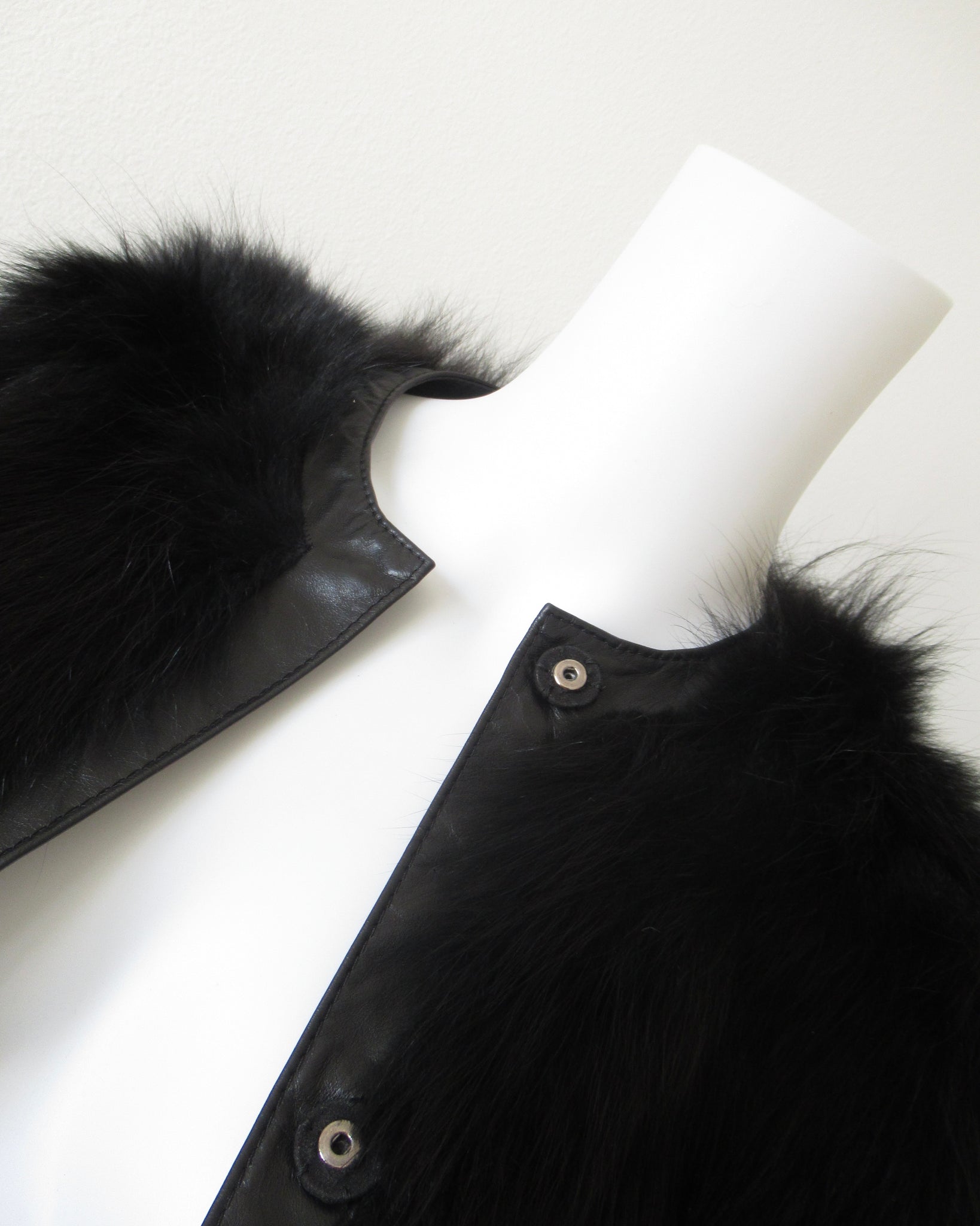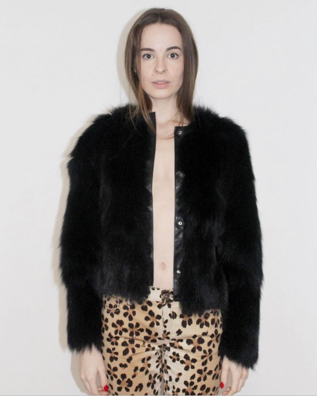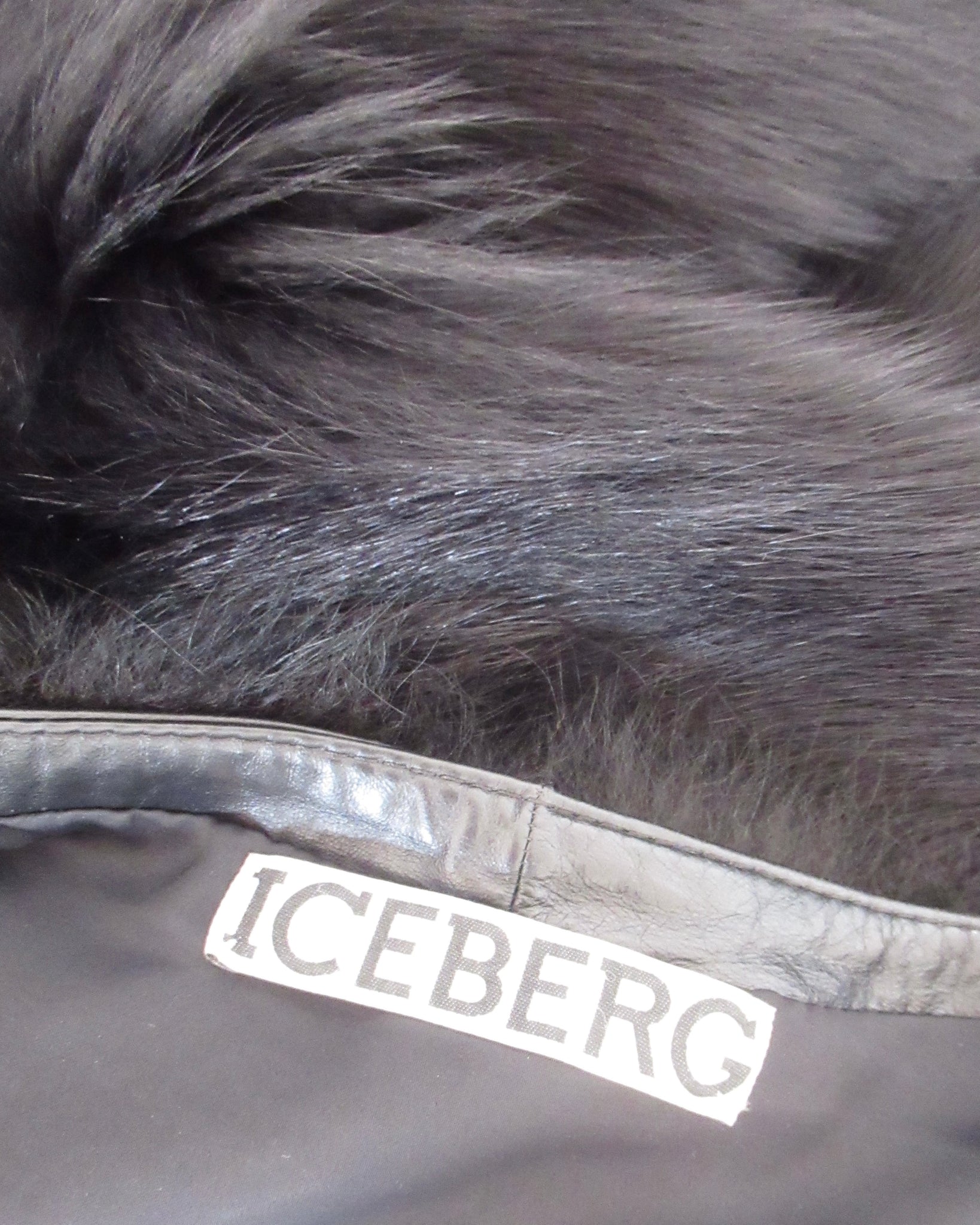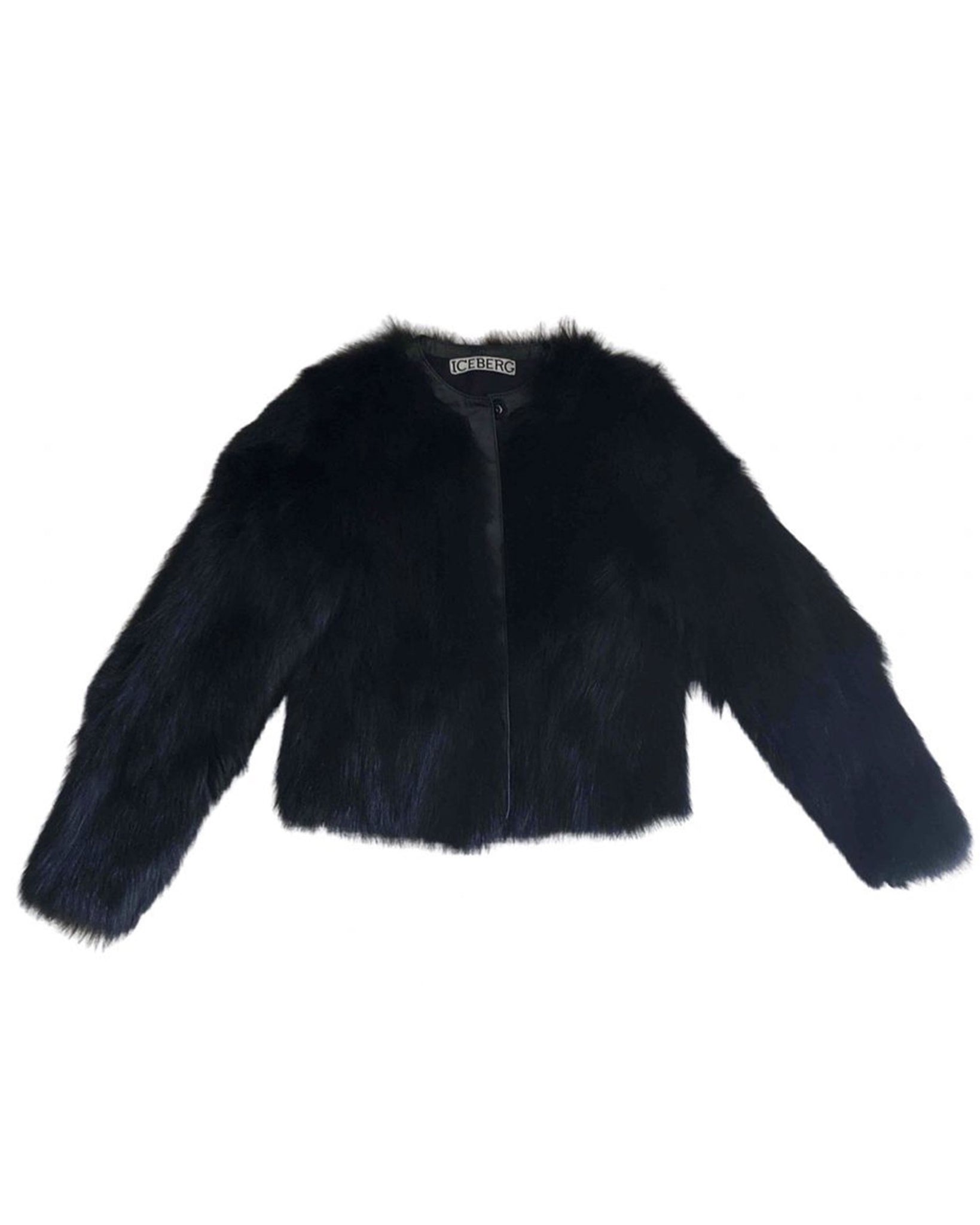 Bomber in pelliccia nera con bordo in pelle con bottoni a clip Iceberg.