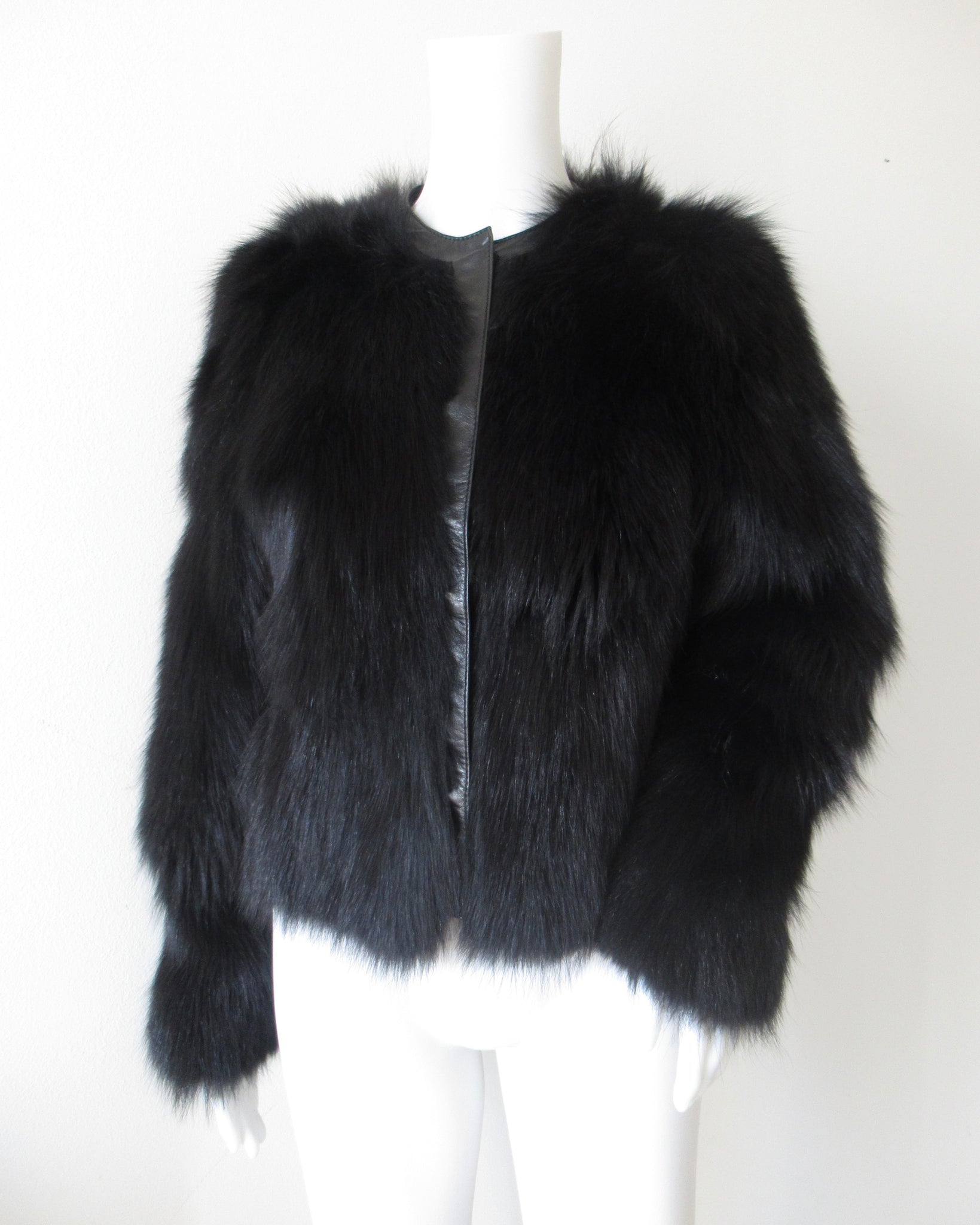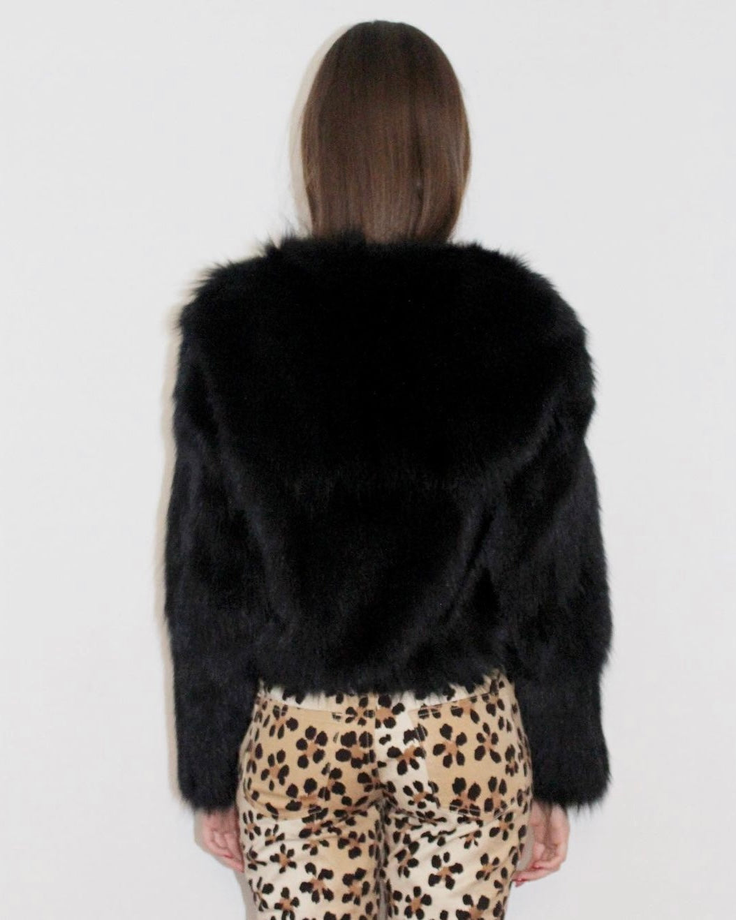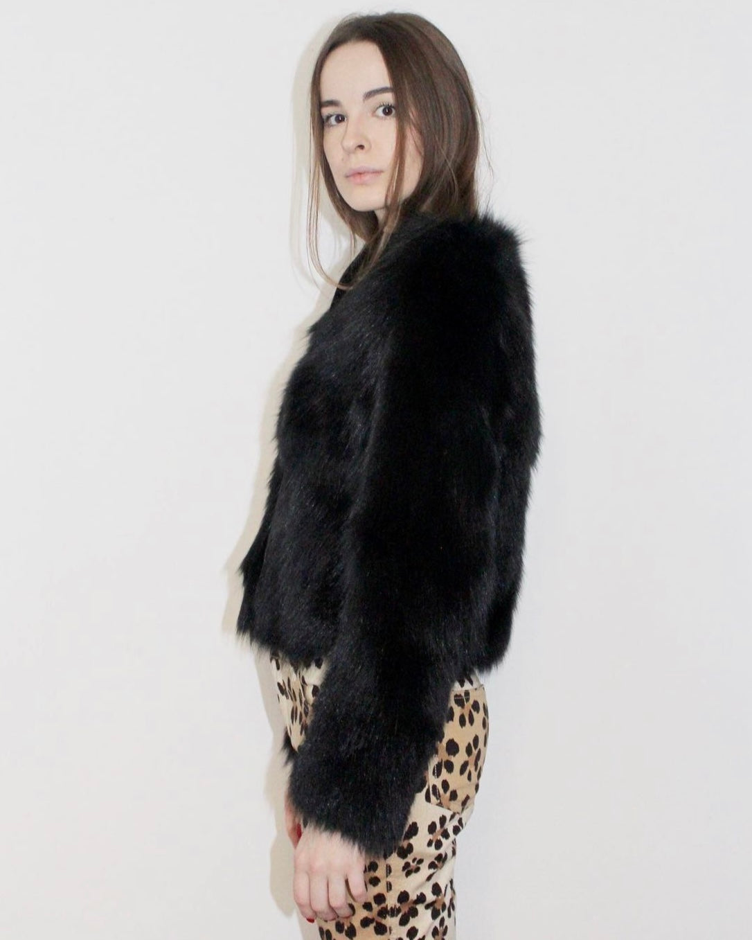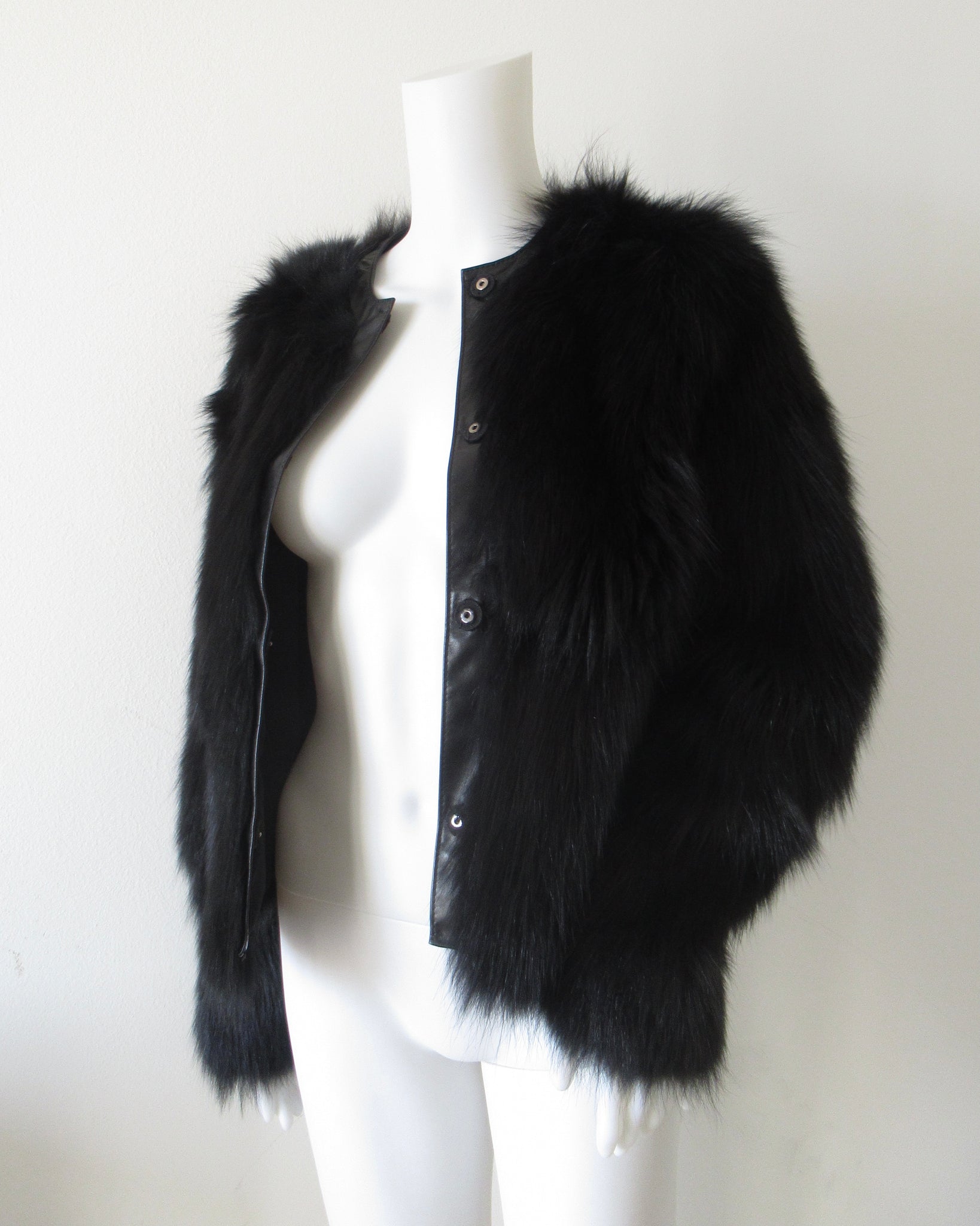 Bomber in pelliccia nera con bordo in pelle con bottoni a clip Iceberg.