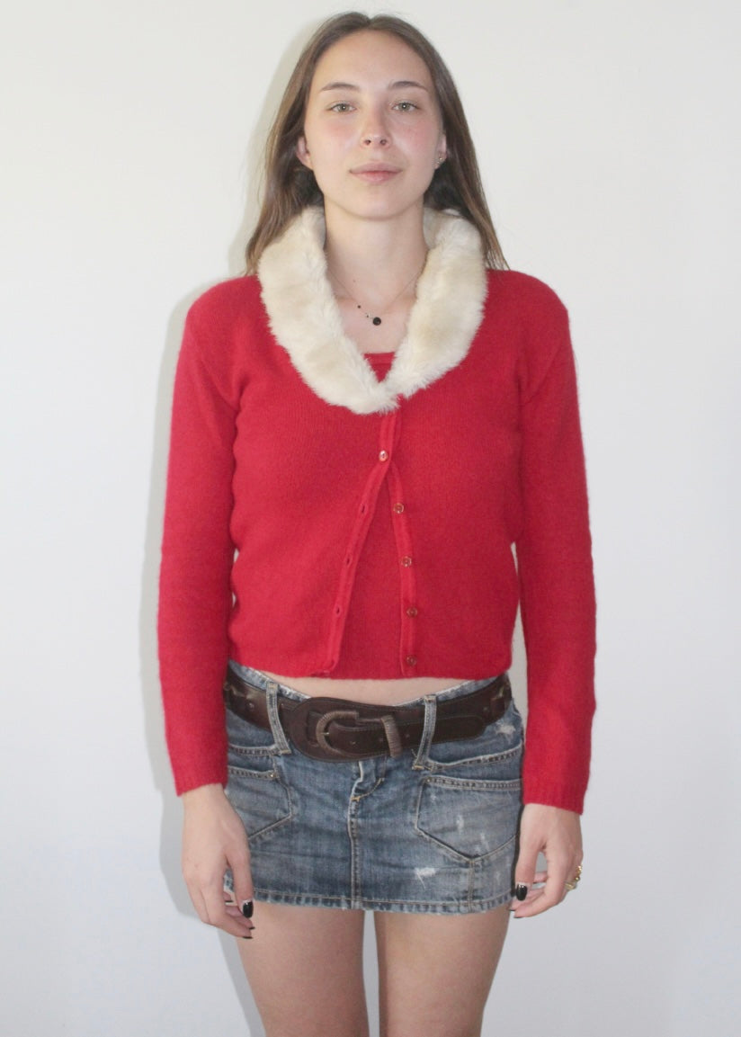 Twinset canotta + cardigan con collo in pelliccia vintage anni 90, Vintage no brand.